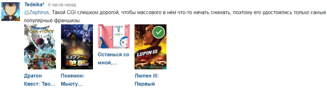 @Toku Tonari, Мне всё равно на таких людей, остальные зайдут на страницу фильма и посмотрят что им с нужно.@NetMagic@Tedeika³@Zephirus, Такой CGI слишком дорогой, чтобы массового в нём что-то начать снимать, поэтому его удостоились только самые популярные франшизы.@Dmitry Vatler@Batrachomyomach, Если вся франшиза такая, желание смотреть отпадает сразу.@w45ya,@Batrachomyomach@Tedeika³, так много вопросов и так мало ответов..@NetMagic, слушай, а ты умеешь хоть что-нибудь кроме как изрыгать желчь в комментариях?@NetMagic@NetMagic, можно просто пройти мимо. Я тоже много что не смотрю.@NetMagic@ержанрасправилплечи@ManWithBox,@ManWithBox@ержанрасправилплечи, Концепт это не конечное произведение. Тем более, что в тридэ Люпэн вышел впервые, если я не ошибаюсь. Могли бы лучше, да не хотели, пипл и так схавает. Правообладатели всегда танцуют на могилах авторов, ведь без них можно воротить франшизой как вздумается.@NetMagic@w45ya, Просто излагаю своё мнение@w45ya@ManWithBox, Хорошо сказал@Batrachomyomach, Не считаю правильным критиковать, то что не смотрел. Исключение для российского кина@NetMagic, а я просто излагаю своё мнение на твои мнения.@NetMagic@w45ya,