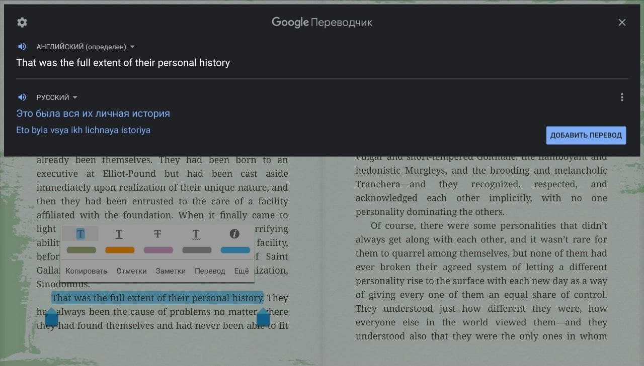 @Blue cat, В пятом сезоне что-то интересно будет?@Blue cat@DOOM The Dark Ages, откуда же мне знать, я же написал выше что на английском не читал. Кто му же вышло только 18 из 22 томов.@Maxthon, твое мнение никому не всралось. Пости свои говноновости дальше.@Toku Tonari, не подскажете, что за гугл читалка? Она же для андроид? Google docs что-ли?@Blue cat,@Toku Tonari есть более быстрый способ перевода (телефон должен поддерживать разделение экрана). В вехней части экрана запускаете приложение Переводчик (от google), в нижней - librera reader. Librera reader позволяет открывать выделенные фразы (именно выделенные, никаких дополнительных кнопок жать не надо) в выбранном приложении. Настраиваете либрера ридер так, чтобы выделенные слова открывались в Переводчике (шестеренка -> открывать выделенный текст в... -> "www Google Translate"). Далее при чтении выделяете нужные фразы, и их перевод сразу же отображается в Переводчике (который уже открыт сверху). Главна фишка в том, что в Переводчике можно полистать страницу и выбрать подходящий перевод слова.@Toku Tonari,@Blue cat@Nonameovich, Google Play Books. На андроид 100% есть, на iOS - не знаю. Хотя вот, сказали, что и в Moon Reader тоже есть встроенный переводчик.@Nonameovich,@Blue cat@Toku Tonari, можно читать на полный экран, тогда при выделении просто Переводчик откроется отдельно. Можно настроить на любое другое приложение, например даже на Яндекс Переводчик.Ну я вот Оверлорда читал и чуть не помер от такого лютого англа. Поэтому теперь всегда читаю его с раздвоением экрана.
