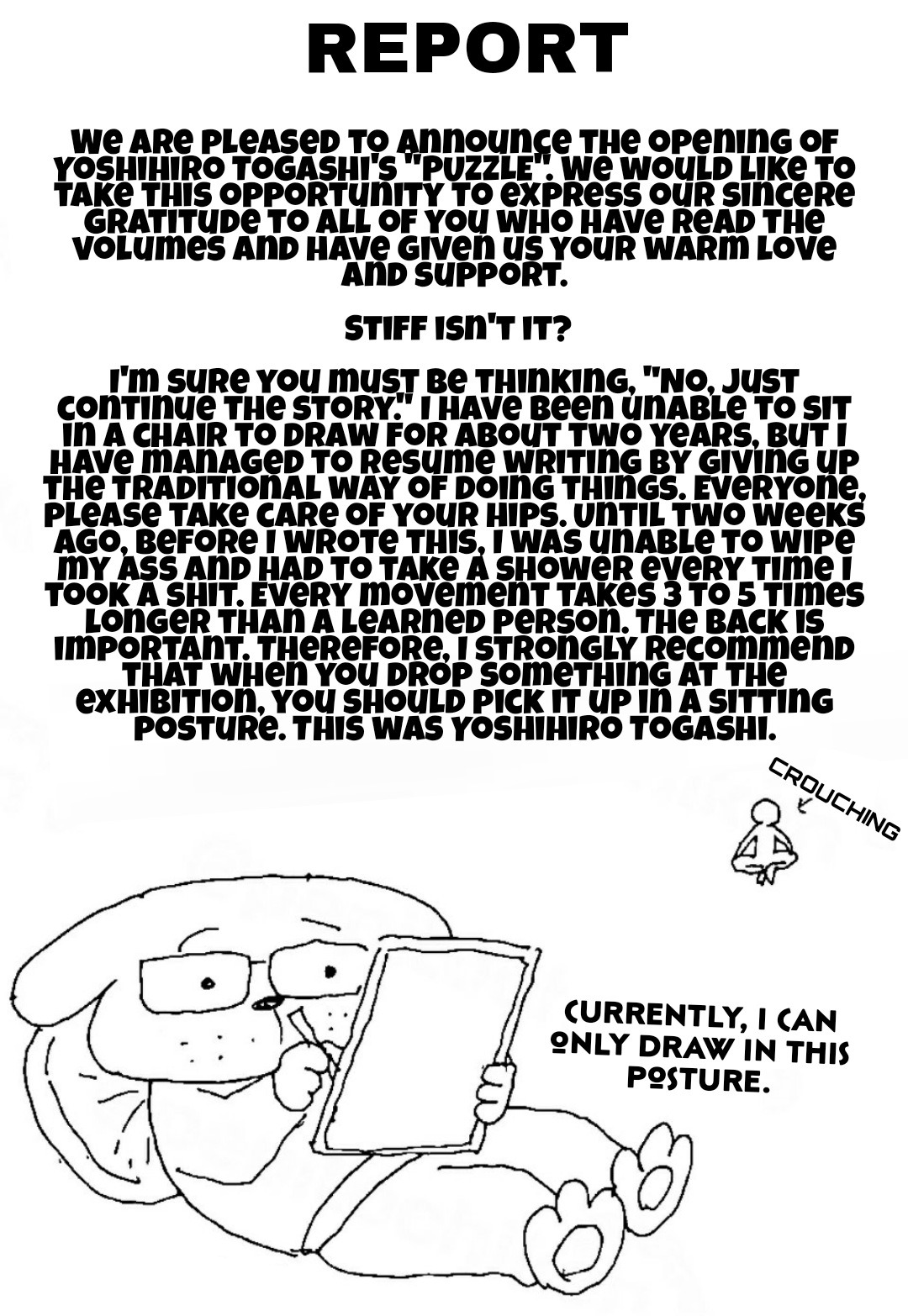 @0ffeVe, вы говорите так, будто мангу так просто сесть и нарисоватьосновную работу делает автор - надо сделать раскадровку, надо придумать текст, надо это все связать между собой, стилизовать, придумать дизайны и так далее. это все делается сидя и по многу часов.