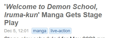 @SeyMur2, про постановки я беру исключительно с ANN, возможно она мне не попалась на глаза либо ее там нет, а может и есть, но только с тэгом лайв-экшн. А в моих интересах желательно чтобы был еще тэг манги или аниме, как на Ируме.