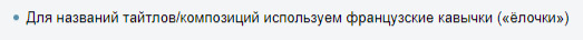 @Не тычь я Ким Лукич@MR_nick_Russ, 1. Правила русского языка одни для всех. И отменить их смогут разве что на уровне правительства РФ. То есть правила сайта не главнее правил русского языка. В правилах сайта сделан упор на то, что нужны именно «такие кавычки», а не "вот такие".2. Понятно теперь в чем косяк. Оказывается, если в профиле стоит выбор на показ названий латиницей, то они и вот в таких местах (а не только на страничке произведения) показываются латиницей!