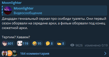 @Enimant@воскресло снаружи, я бы с тобой сходил(@воскресло снаружи@Enimant, если честно, я соврал, я не пойду, так как анимешники меня изобьют, плюс я не досмотрел первый дандадан@Enimant,@Vlad Kononenko2@воскресло снаружи, за что тебя бить? Там же не сходка яойщиц@воскресло снаружи@vibrant,@vibrant@Enimant, я так много анимешников оскорбил, что боюсь их в жизни встретить@Enimant@Bloodbear, ну факт. Фильм резко обрезали, прям обидненько@воскресло снаружи, большинство тех кого ты оскорбил дальше собственной комнаты не выходят. Зря переживаешь@Kralka,@воскресло снаружи@Enimant, ахаха лохи дебилы@Enimant, в любом случае для похода на такой крутой фильм мне нужны деньги дайте денег а билеты стоят миллионы(500 рублей)Но дубляж Банды после Флерроу Филмс не зашел.