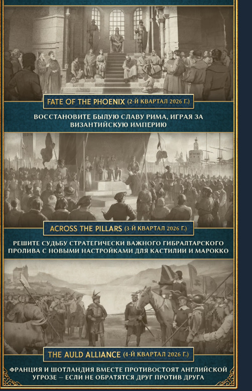 @cy6erbird, возьми да и посмотри рейтинг, из него общая тенденция видна. Или ты целенаправленно ищешь единомышленников?@flyoffly@fandor, Первые ДЛС будет больше flavor. Для византии, кастилию/марроко и на столетнию войну(они тупо не знают что делать для длс. как они сказали)