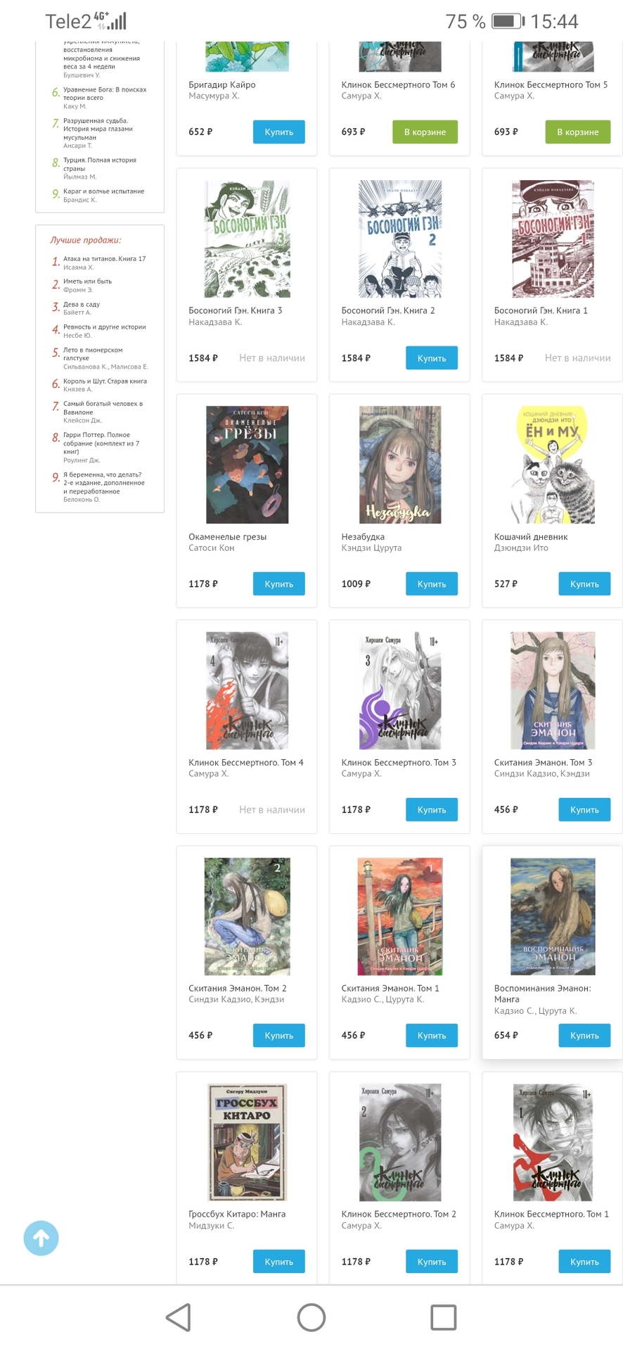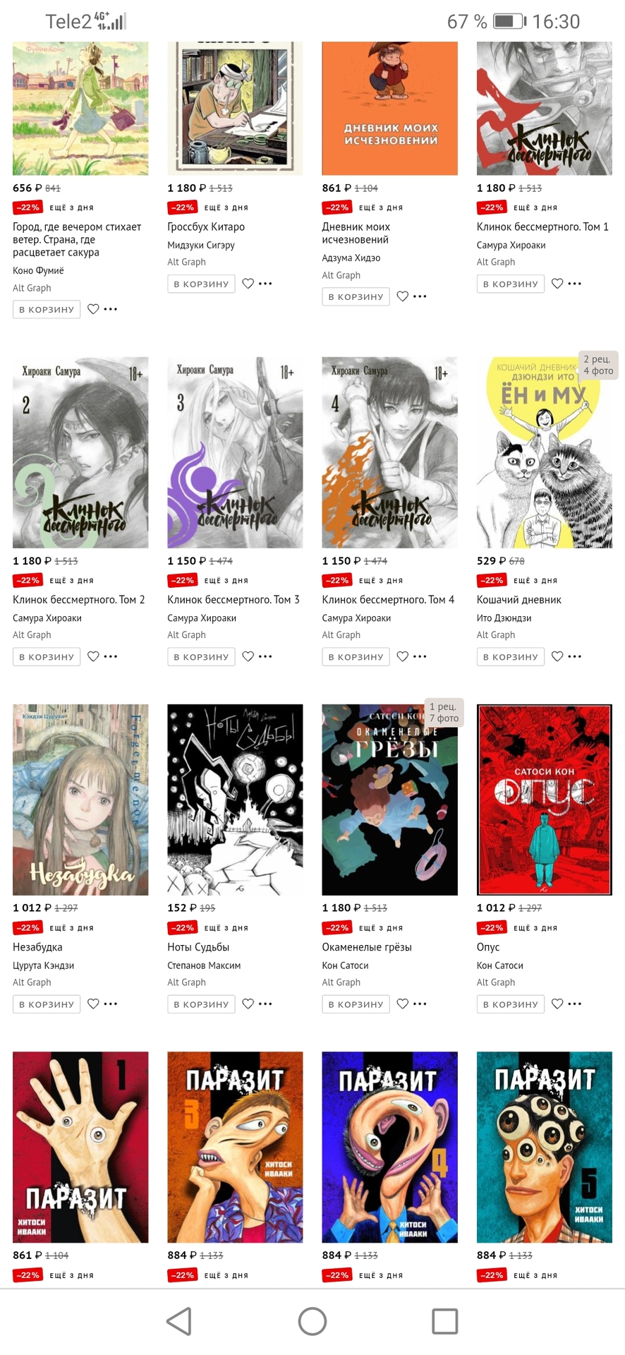 , теперь 1178. На 452 рубля выросла цена. Это 62%. Благо успел взять. А вот Эманон и Незабудку нет, т.к. рисовка/стилистика/дизайны у Цуруты конечно красивые и приятные, но мне данные работы не шибко интересны, поэтому я их покупку на будущее отложил, когда лишними деньгами разживусь. А вот оно как получается, тоже подорожали. Незабудка на 357 руб. Почти всё, в общем, подорожало. Теперь уже нигде работы Alt Graph дешевле не купишь, чем раньше в Чг. В том же Лабиринте, который многие за акции хвалят, дескать можно мангу вообще за копейки взять, работ Altов раньше вообще не было (новых), а теперь, когда завезли, по скидке они стоят даже