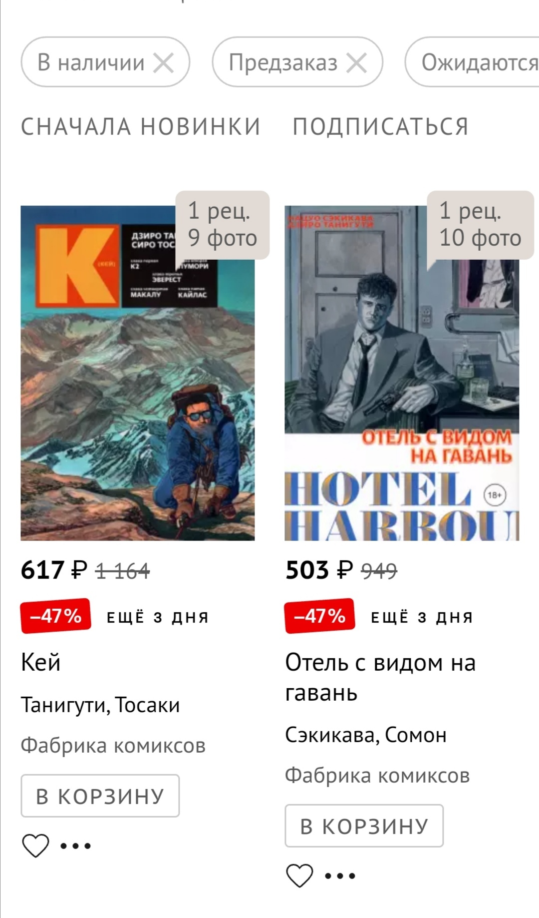 @Venger222, опять у Лабиринта скидки. Цена на работы Alt Graph (и не только) падает до 50%, а в ЧГ она соответственно повышается, до цены указанной в Лабиринте (у них там договорённость есть, продавать не ниже определённой цены, т.к. людям будет невыгодно покупать со скидкой в Лабиринте, когда в ЧГ без скидки дешевле. Иллюзия конкуренции). А вот цена на мангу ФК упала, как минимум на некоторую часть работ. А это тоже объяснимо. Т.к. в Лабиринте они стали стоить ниже чем в ЧГ. И там соответственно цены тоже понизили. А я уж было разбежался и хотел с аванса 7 и 8 тома Клинка Бессмертного купить. Ну, значит пока книги возьму, подождём'с пока цена на мангу назад слегка отскочит.