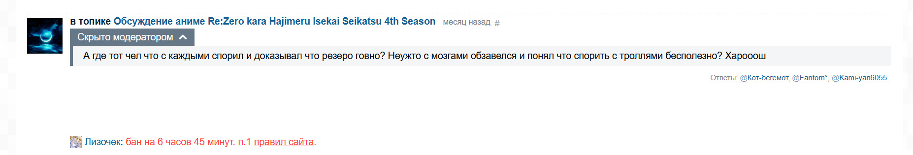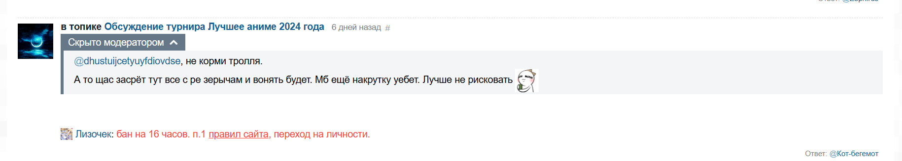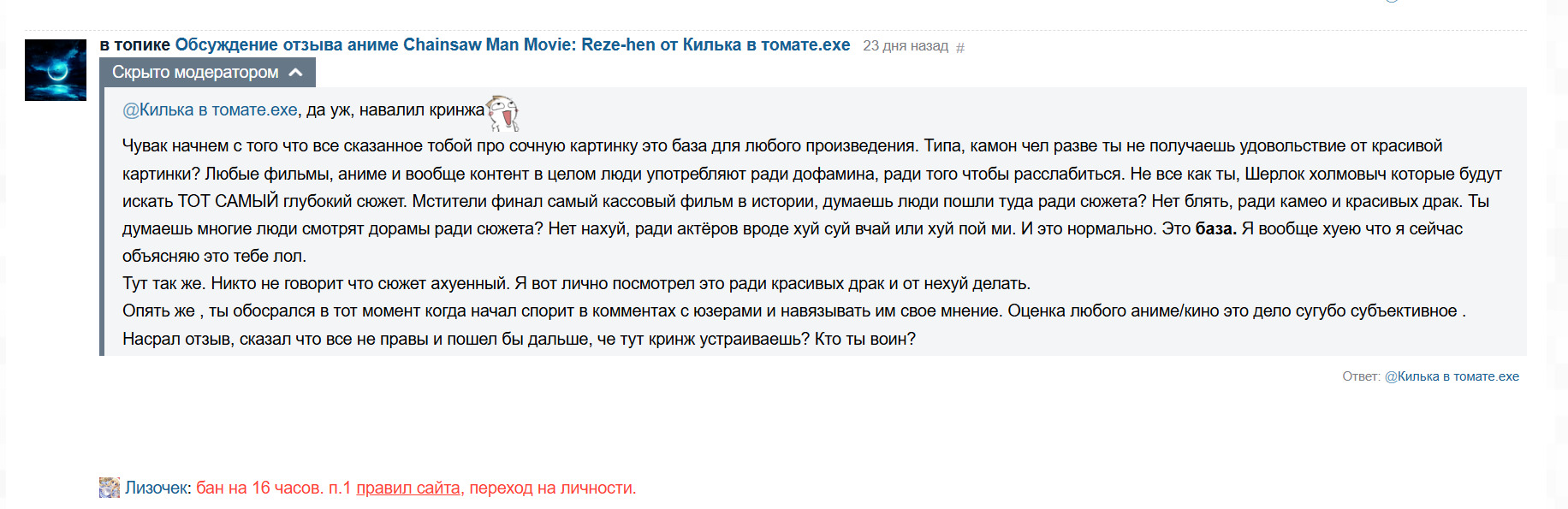 чего я конечно же заметил.Казалось бы, промежуток времени большое, да и сами комменты не жёсткие но почему то 16 часов все равно имеется.
