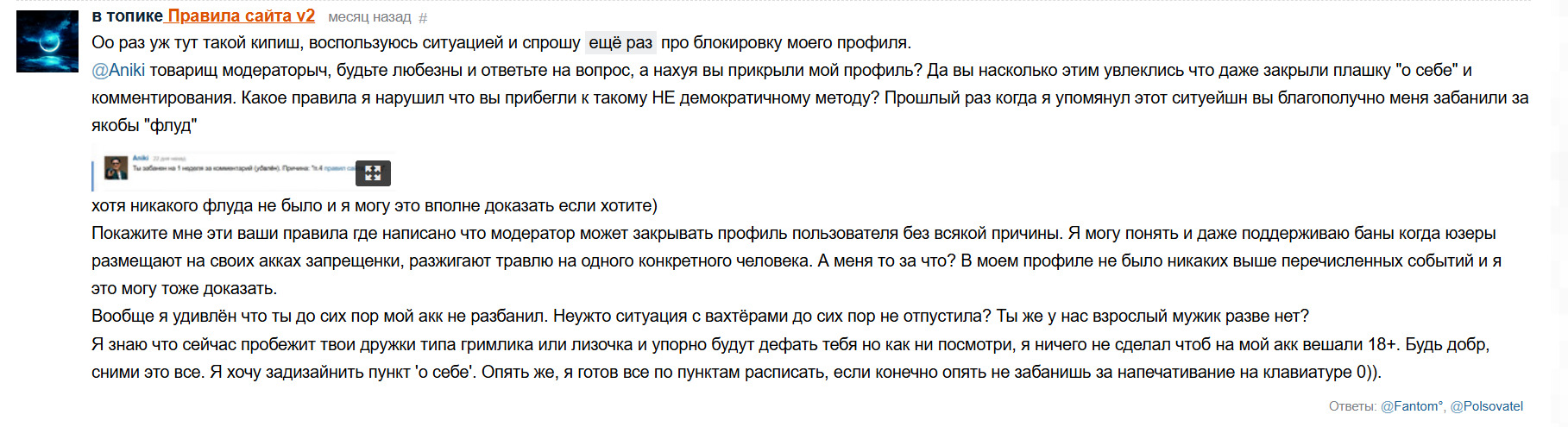 Вот знаете, может кто то увидев этот сюр подумает: " ебать конечно тебе профиль заблокировали. Как будто конец света. Зачился бро"