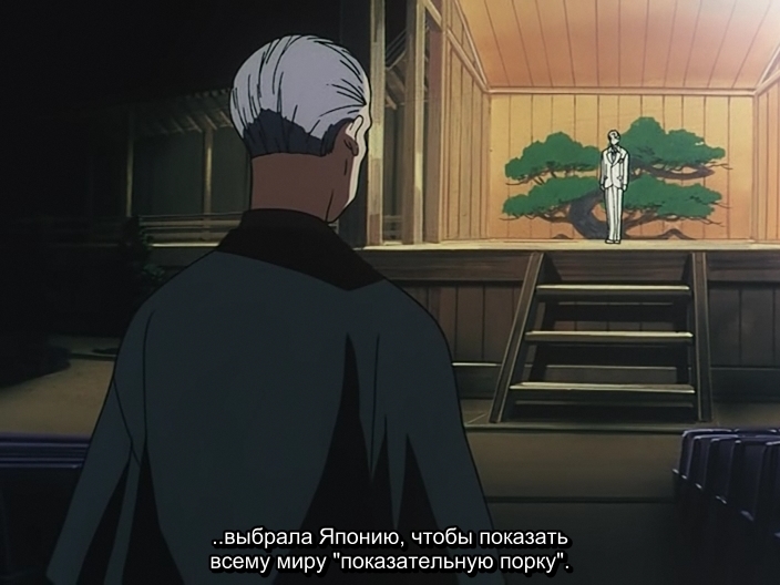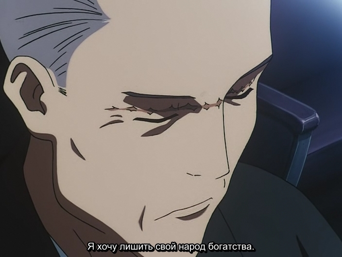 Hiraku NishidaХираку Нисида - очень интересный и противоречивый персонаж. Душа японца - меч:, бритвенная острота и богатая инкрустация. Старик очень любит свою катану и рассказывает о ней всем подряд; при этом заверяя, что он японец и патриот. Нишида олицетворяет собой патриота-идеалиста, который не может принять изменений в обществе и культуре, трактуя это, как утрату японской национальной гордости (чем-то напоминает антагонистов из Rurouni Kenshin: Meiji Kenkaku RomantanБродяга Кэнсин). Причём, в бедах Японии он винит прогнивший Запад (в лице США) и эмигрантов. Но Нишида знает, как поправить дело, как вернуть японцам, утраченную японскую национальную гордость, как повергнуть мерзкий США на лопатки. Для этого необходимо взять под контроль всё население Японии, развалить всю экономику страны и обречь её на голод для того, чтобы воспитать в японцах сильный дух.