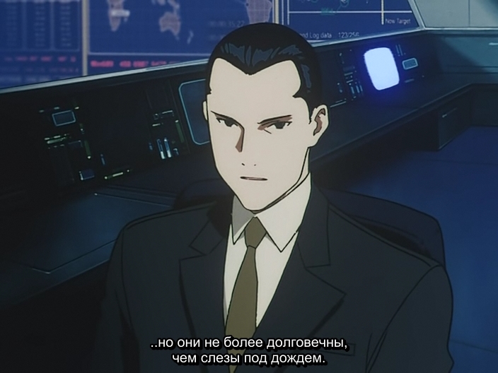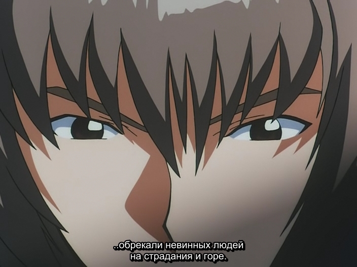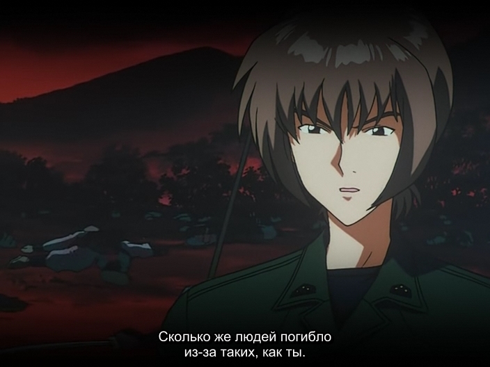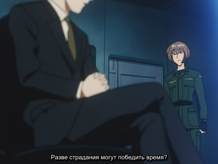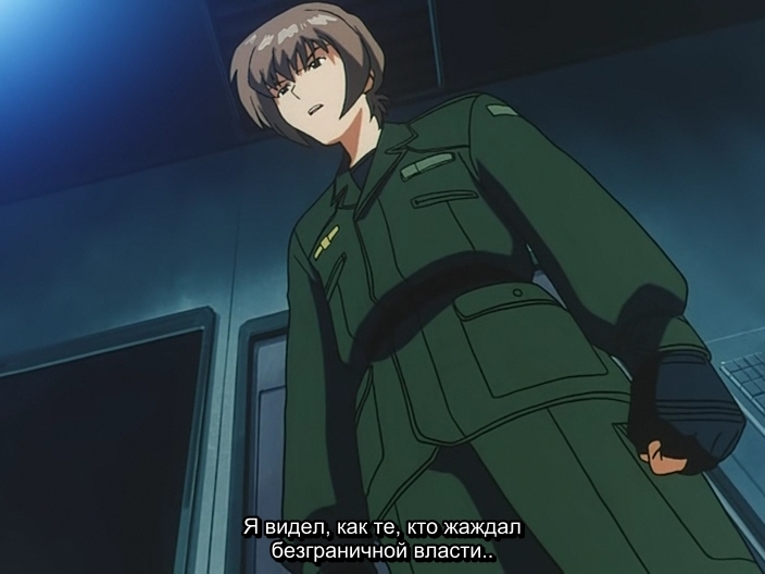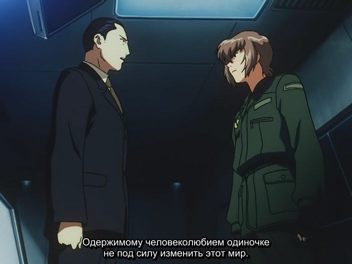 Подполковник Akio HirokawaАкио Хирокава считает, что для того, чтобы истребить насилие, скрывающееся в тени, нужно позволить ему полностью проявиться. Также придерживается принципа, что насилие побеждается другим насилием, только идейным. Т.е. с его точки зрения, идеалы возвышают насилие. Кадзукиё Гова сразу подмечает, что оправдывать всё идеалами, всё равно, что находиться в плену иллюзий (тех, самых идеалов, в голове человека).