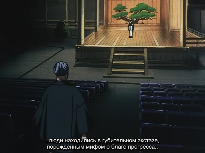 Во-вторых, в Гасараки используются традиционные танцы Но как средство привнести мистицизм. Но это сделано не для крутости, как религиозная символика в [Neon Genesis Evangelion]. В данном случае танец Но служит чёткой сюжетообразуещей цели: раскрутить историю любви о двух людях, которые должны бороться с судьбой на протяжении более тысячи лет, чтобы быть вместе. В аниме аж целых два эпизода посвящены событиям, произошедшим в эпоху Хэйан (794-1185 гг.), закладывающих основу для современных событий.