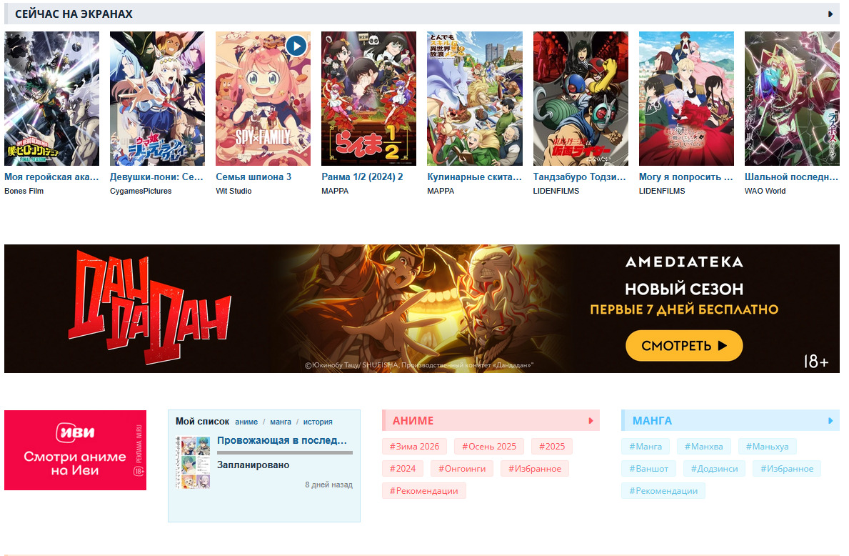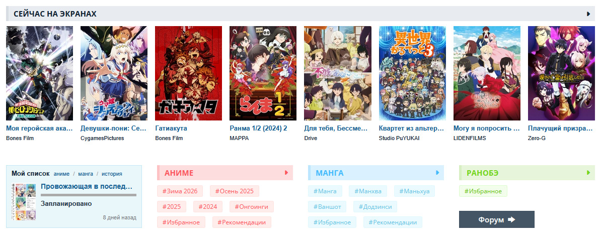 - Оставляет только разделы «Аниме», «Манга», «Ранобэ» с тегами