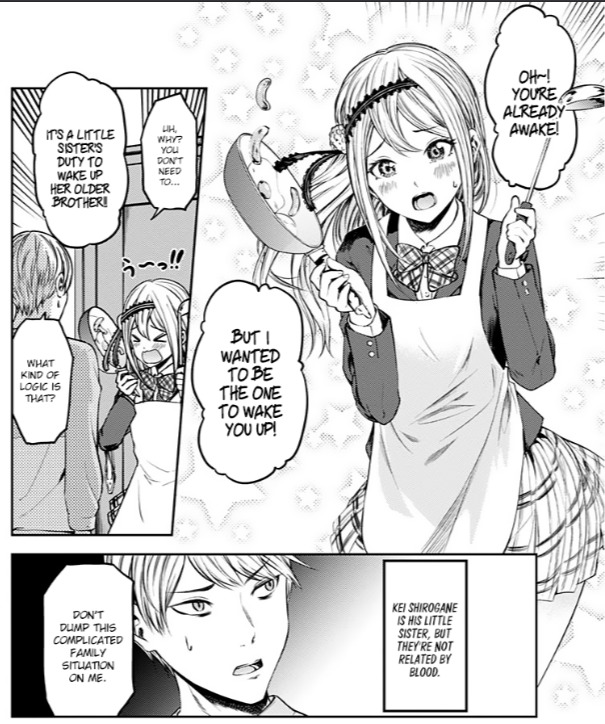 А так, тут сестренка не родная, родители уехали за границу и она в него влюблена. (а еще, что со сковородкой и гравитацией?)