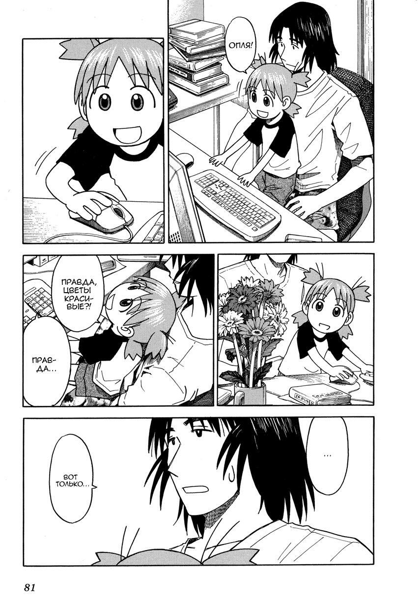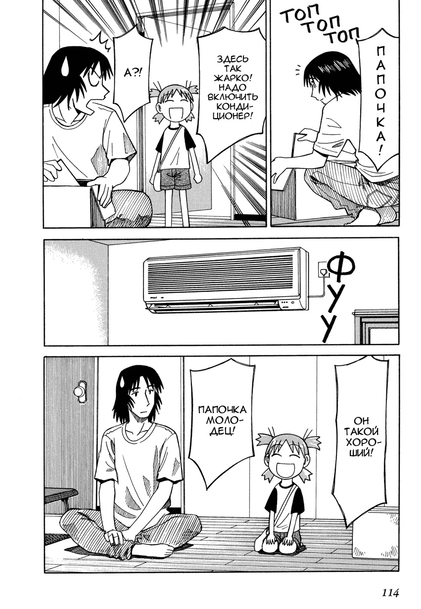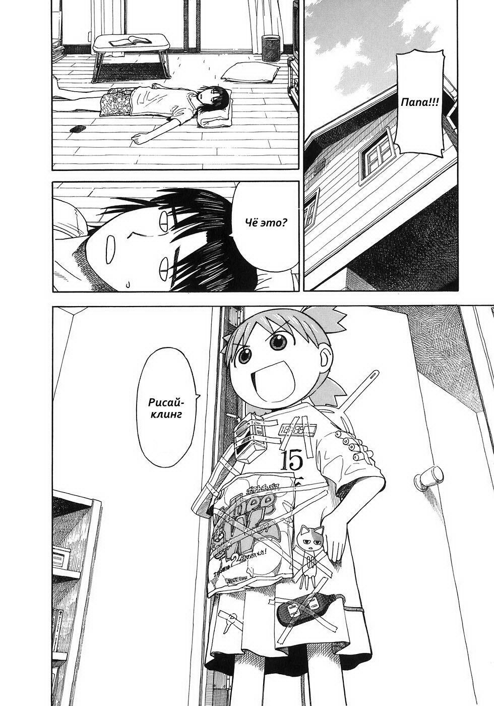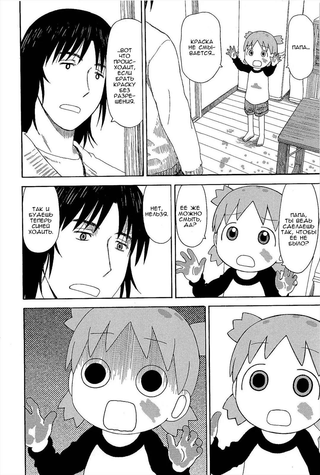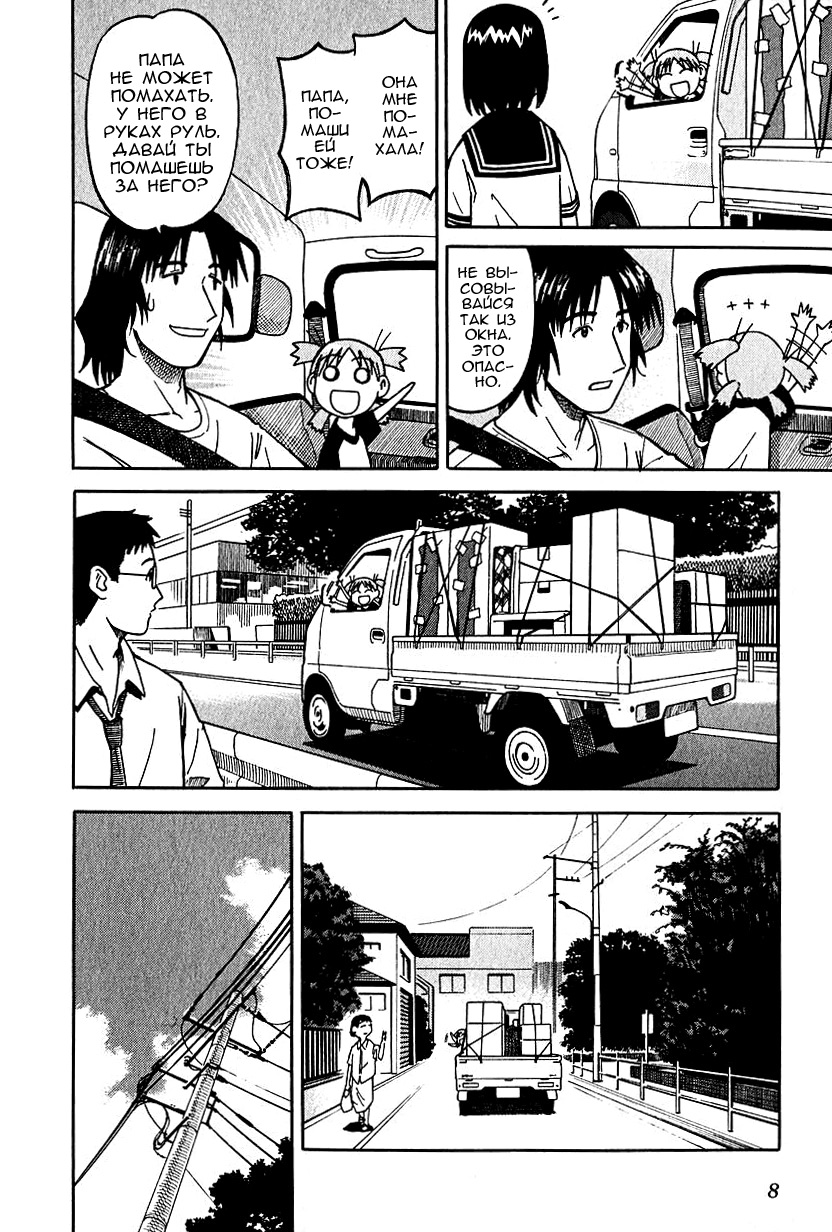 Манга стартует с того как мы знакомимся с Ёцубой и её отцом Ёсукой Кавай, которые переезжают в новый дом. И мы сразу же видим какая Ёцуба позитивная и общительная)