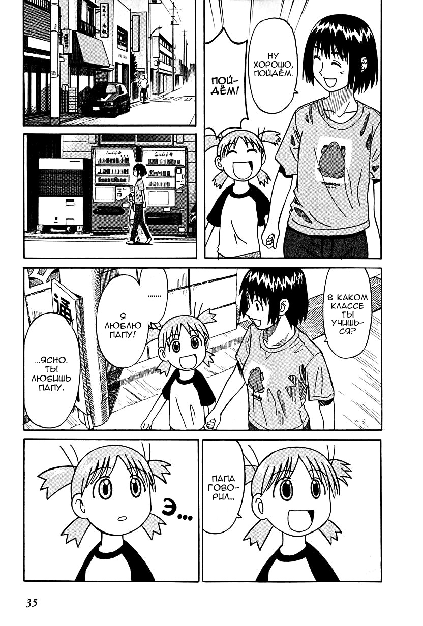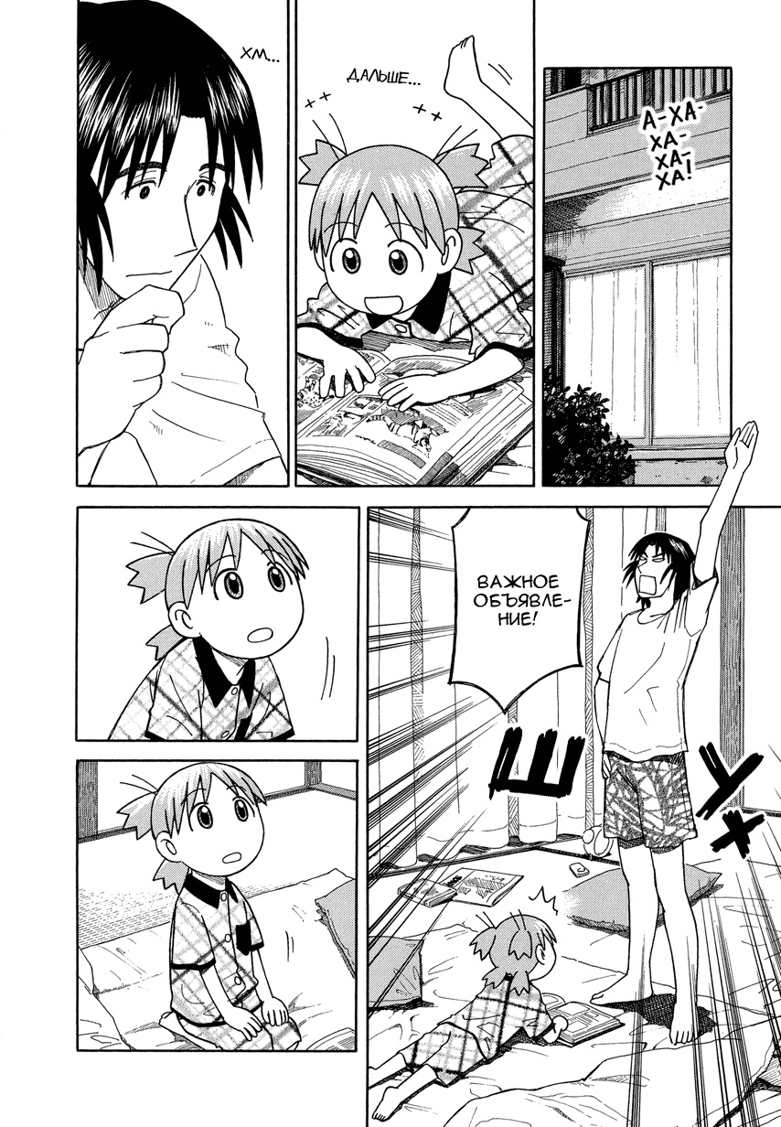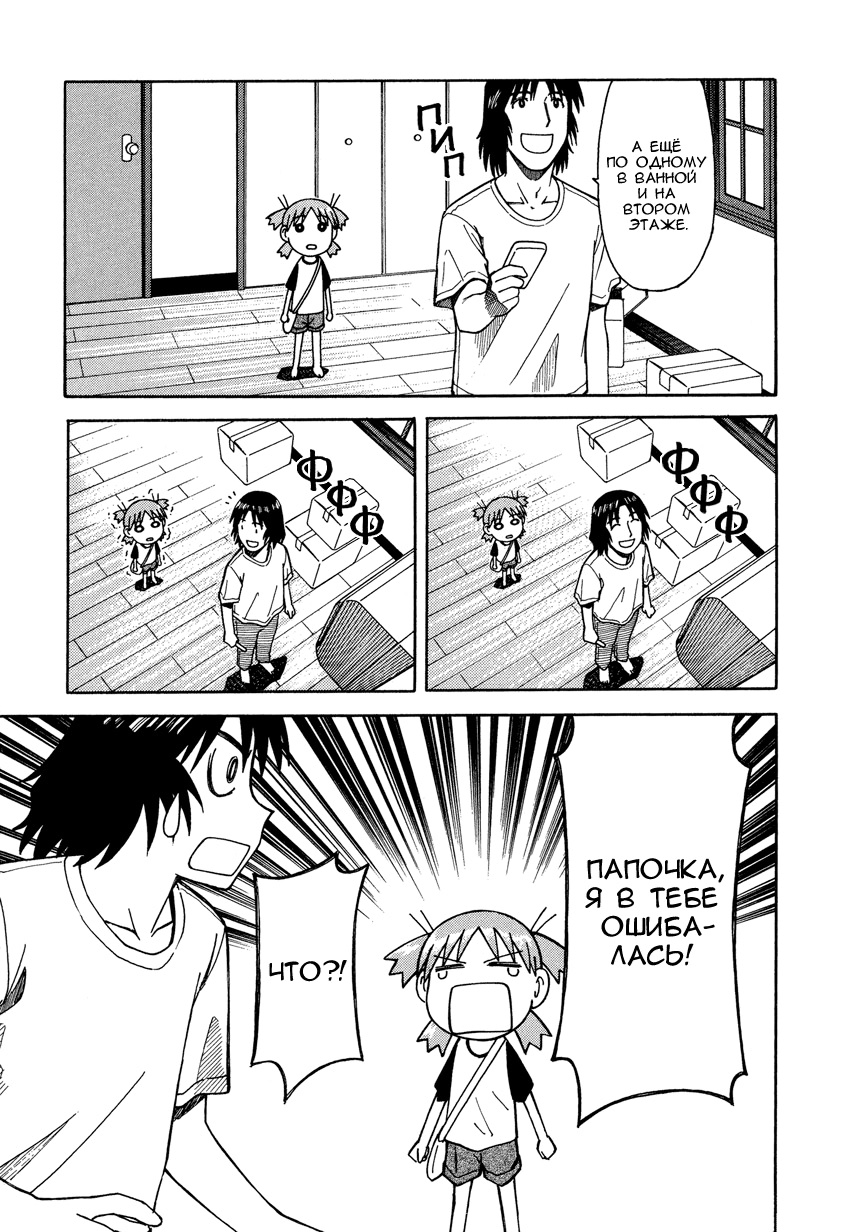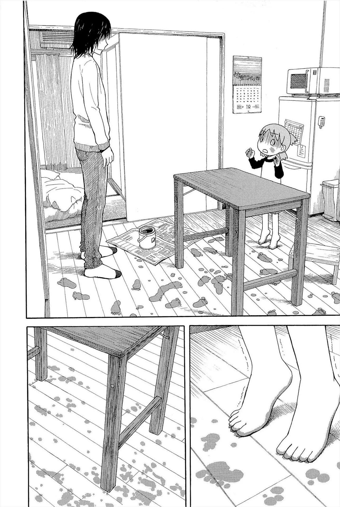 Манга стартует с того как мы знакомимся с Ёцубой и её отцом Ёсукой Кавай, которые переезжают в новый дом. И мы сразу же видим какая Ёцуба позитивная и общительная)