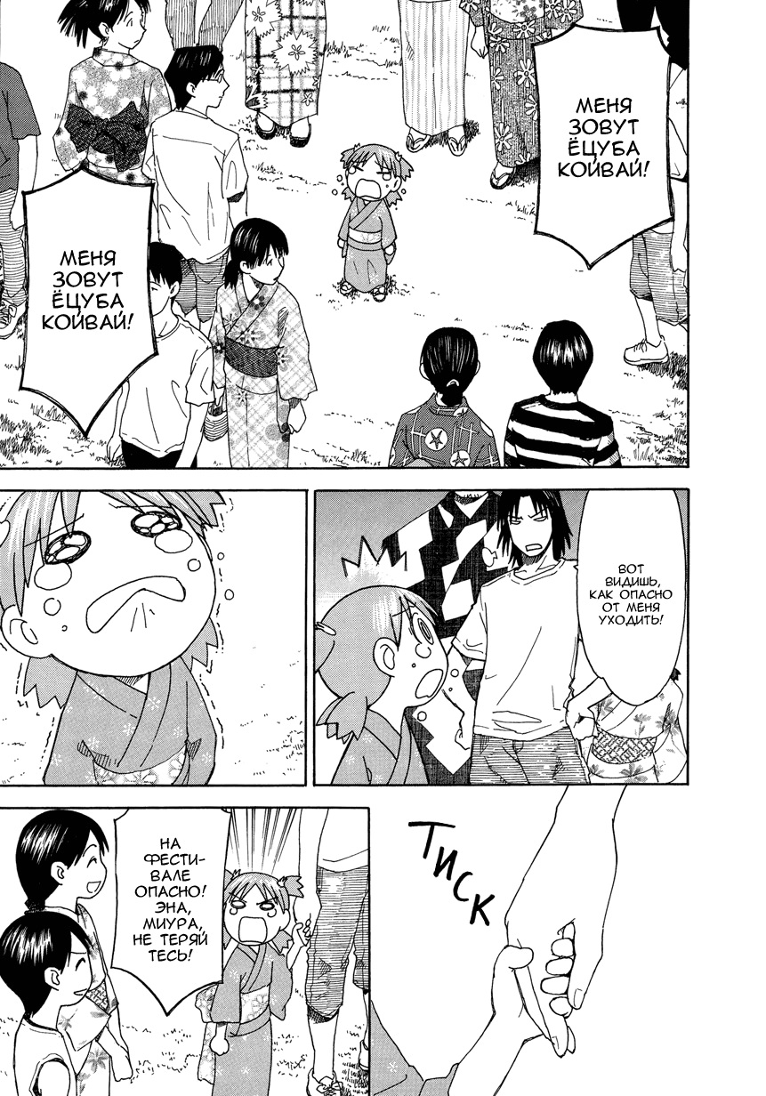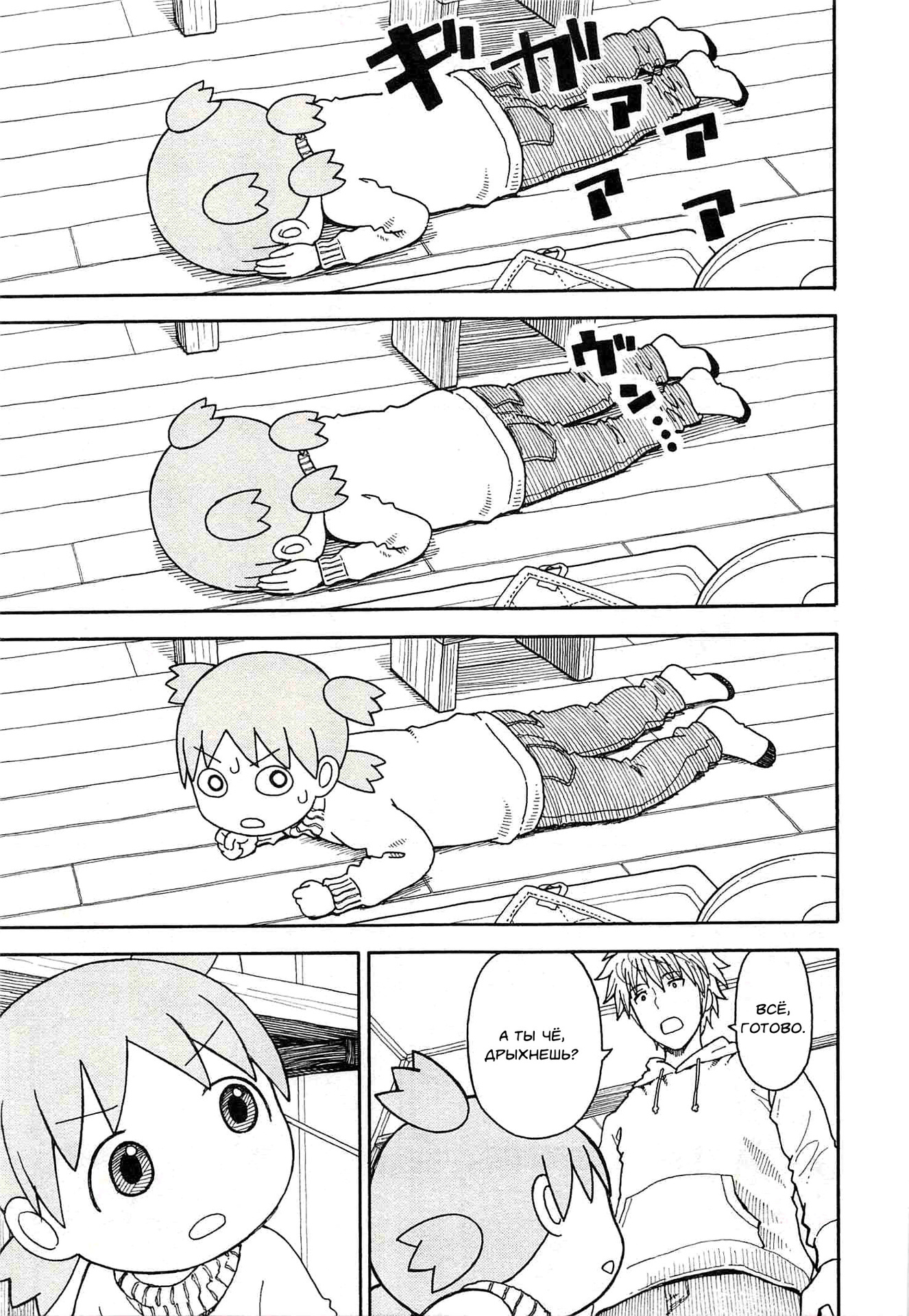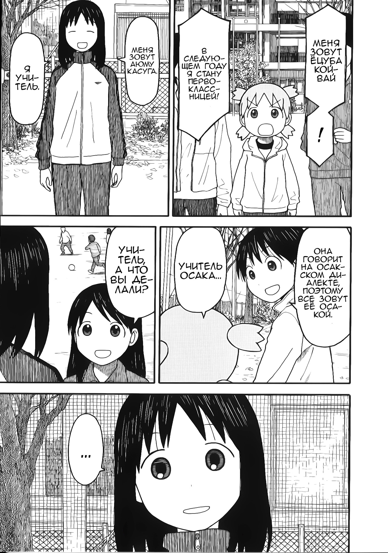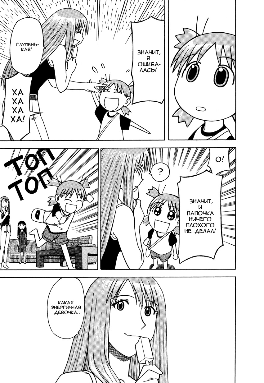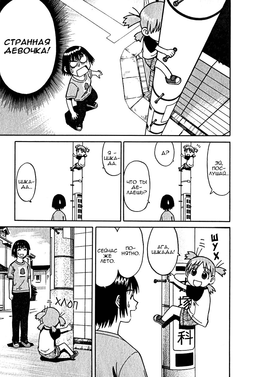 Манга стартует с того как мы знакомимся с Ёцубой и её отцом Ёсукой Кавай, которые переезжают в новый дом. И мы сразу же видим какая Ёцуба позитивная и общительная)