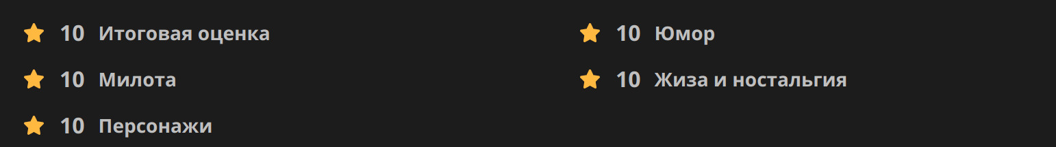 А вот такие оценки я бы поставил тайтлу за его достоинства и недостатки: