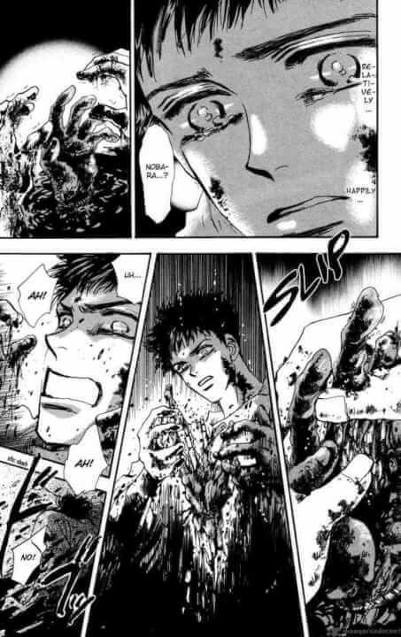 И всё это в перемешку с завлекающим сюжетом, который не отпускает тебя до самого конца не давая даже прилечь поспать, ибо интересно. В первую очередь это история не про мир после апокалипсиса, а про людей, которые в нём выживают и мангака справляется просто на 100/10 раскрывая каждого из людей попавшего в эту историю. Здесь нет лишних персонажей, здесь нет тех, кто просто болванчиком ходит на фоне иногда вставляя словечко поддакивая гг. Каждый полезен, каждый имеет историю, мечты, цели. Да, кого-то показывают больше, кого меньше, но мангака постаралась сделать акцент на каждом и поэтому к каждому выжившему ты привязываешься, да и к тем кто умер даже до случившегося тоже. И что самое главное герои личностно растут. Некоторых вы можете искреннее пожалеть, возненавидеть, а после вновь пожалеть.