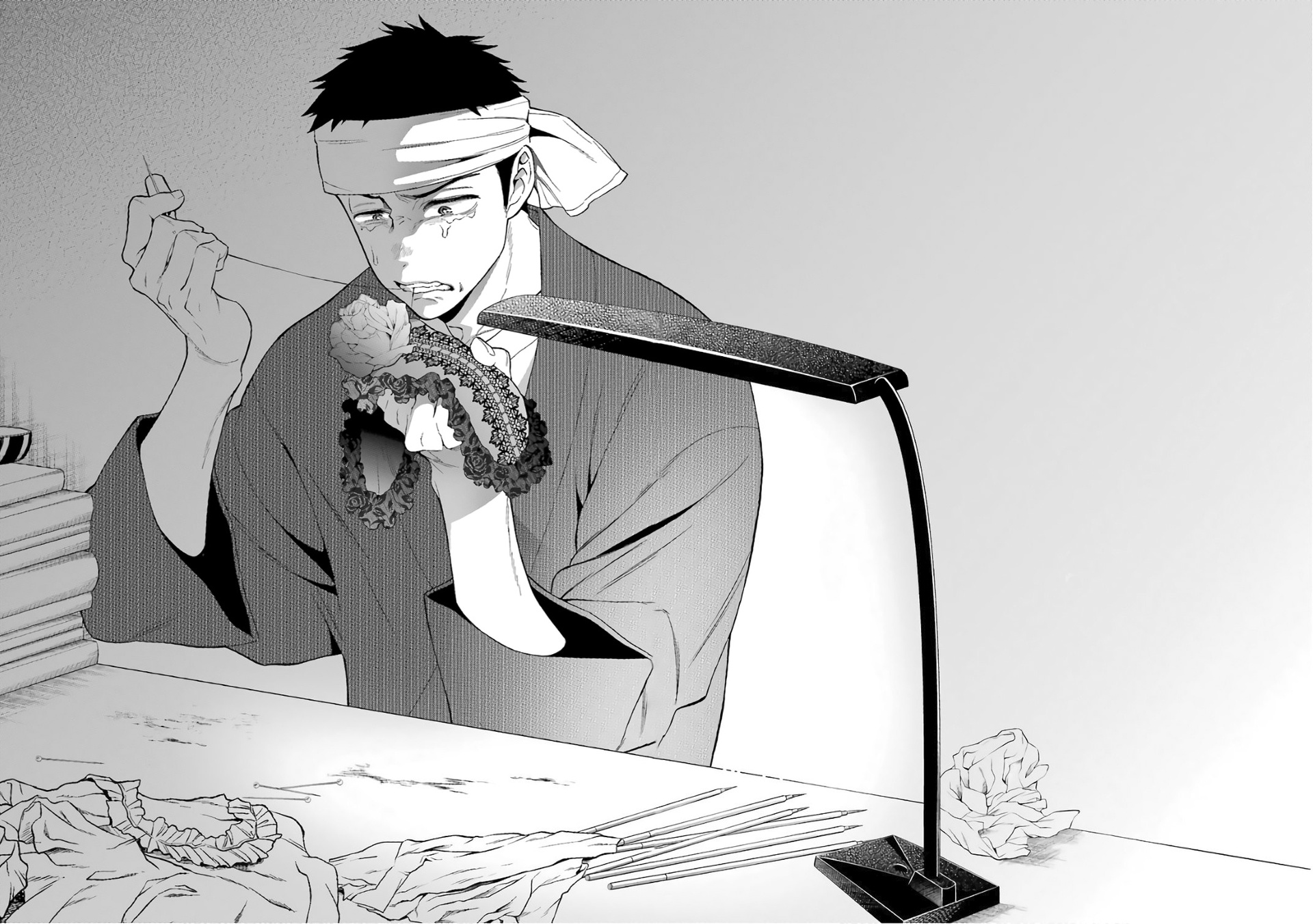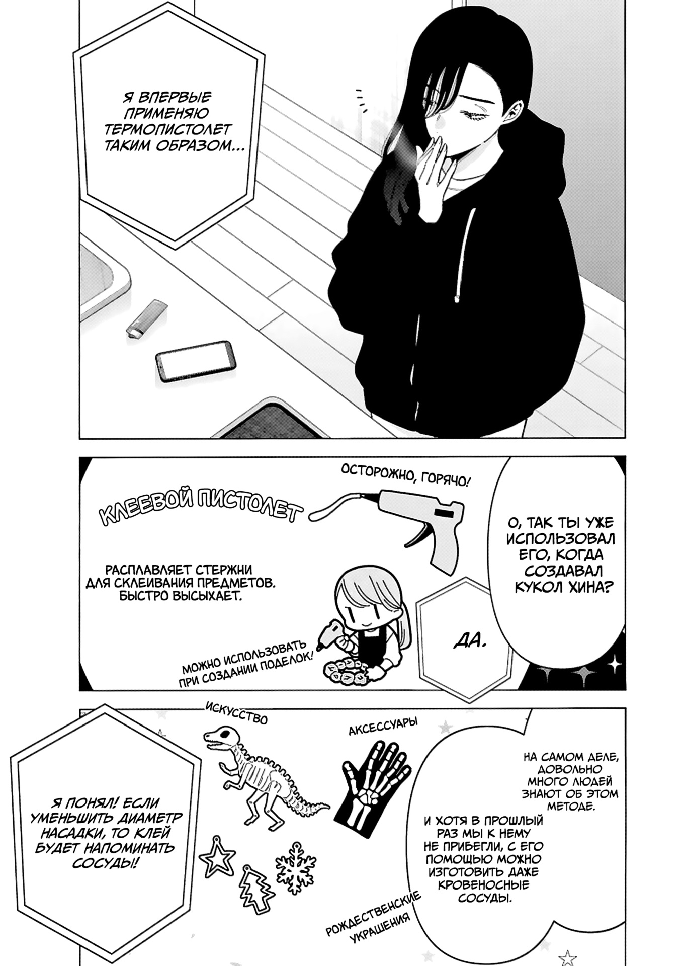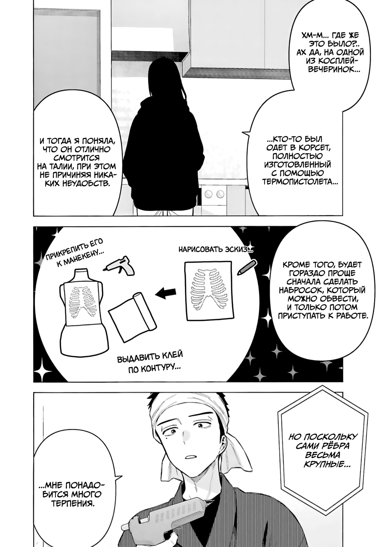 Ну и третья причина, которая не особо повлияла на популярность этой манги, но лично мне очень зашла, это тема косплея и его создания. Я бы не сказал что нам показывается как очень детально, многие просто хорошо показано как происходит его создание, но вот те которые прямо детально показаны, это просто шикардос! Я с таким интересом читал, то как делается реквизит и подбирается материал для костюма, что когда в первый раз читал, то за день догнал онгоинг! (тогда было 50 с чем-то глав на тот момент). Вот пример лишь НЕБОЛЬШОЙ ЧАСТИ создания одного косплея, включая костюм и реквизит: