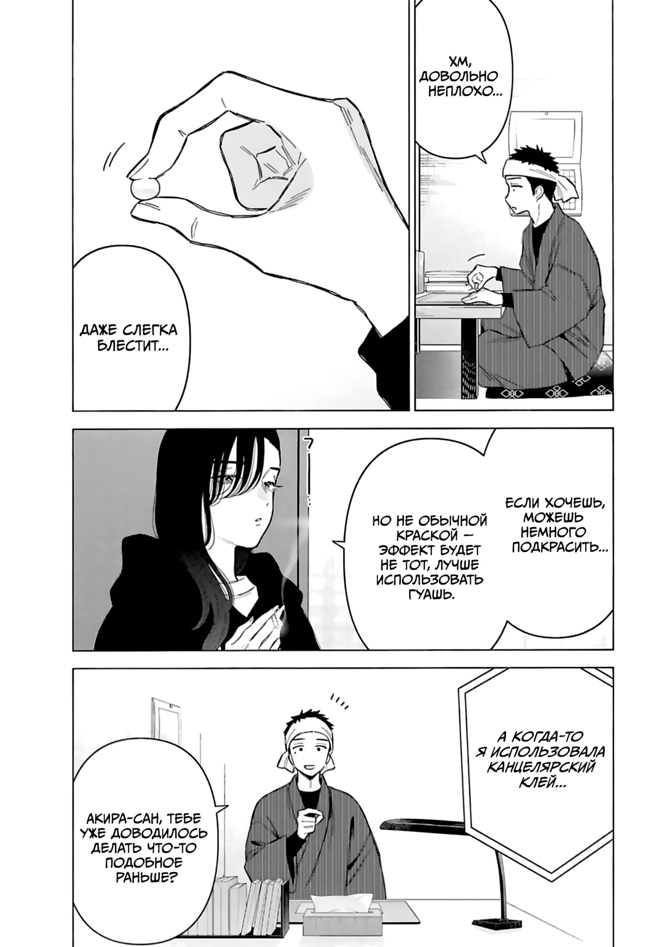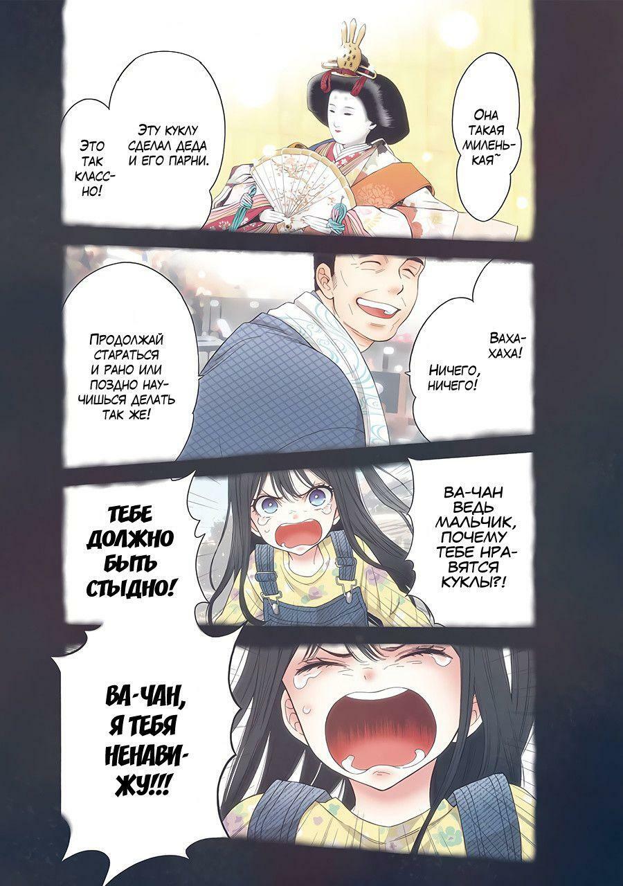 Вот скажите парни, вам же знакомо это чувство, когда в детстве не дай бог кто-то узнает что ты увлекаешься и любишь что-то девчачье и после этого пацаны с района могут тебя засмеять? Ну вот и здесь такая же фигня. Да и среди подростков, увлекаться куклами как-то не модно и не престижно, могут и вправду засмеять. Так что застенчивость в первой половине манги полностью оправдана!