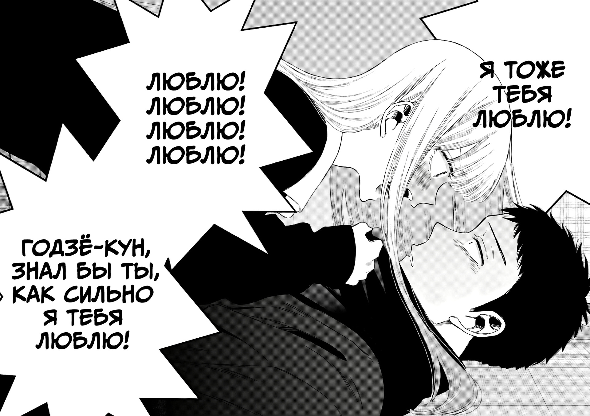 Однако сразу после этой арки были тревожные звоночки в виде недопонимания и любовного треугольника с подругой детства с Годзё, и у меня уже начало потихоньку полыхать пукан, но автор забайтил нас на это и просто закрыл давний гештальт Годзё с его подругой и ультанул признанием главных героев друг другу!