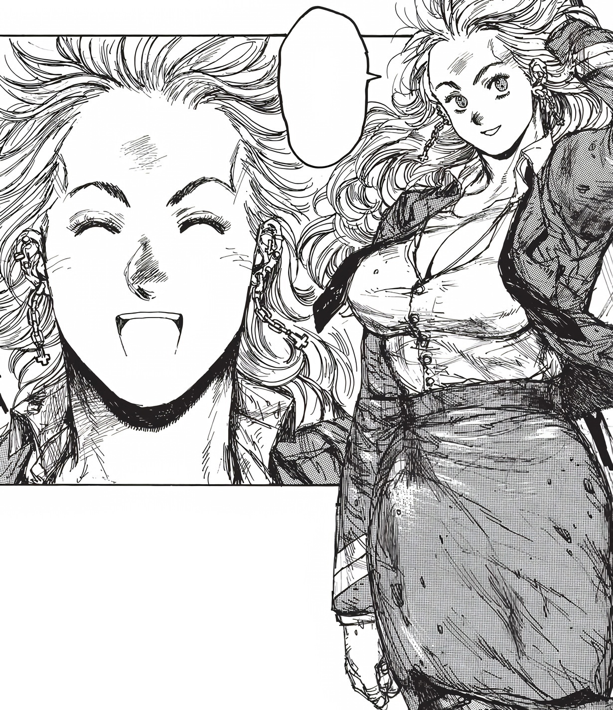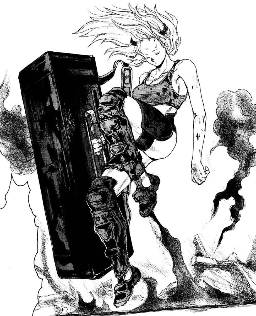 Ещё бы хотел выделить ещё моих любимых персонажей таких как Эбису и Фудзита (тот парень маг, что выжил в начале). По началу мне они вообще не нравились, Фудзита был слабаком неудачником, помешанным на мести, а Эбису дважды повреждали башку и она поехала кукухой и несла всякую херню. Однако со временем, когда я уже влился в эту мангу, я прочувствовал всю эту атмосферу и сюр сего шедевра, я по-настоящему полюбил этих персонажей, как и все остальные читатели. Шутки Эбису, которая из-за бед с башкой не чувствует такта и личностных границ просто убойные, ты как минимум хихикать с них будешь, а иногда натурально угарать. А Фудзита из скучного неудачника, пройдя личностный рост, без всяких силовых апов, а через моральные и волевые, становится персонажем, с которым читатели по-настоящему могут себя ассоциировать. Тоже один из моих наилюбейших дуэтов манги.
