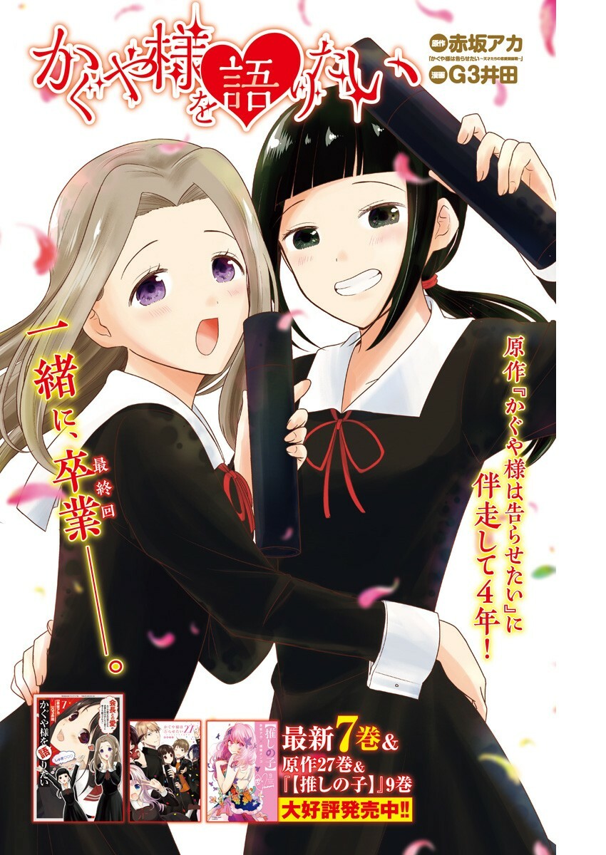 Ака Акасака манга Kaguya-sama: Love is War выпустила последний, 28-й том и его фанбук вместе с последним томом побочного продукта Kaguyasama wo Kataritai в понедельник. Тираж сериала превысил 22 миллиона копий по всему миру.