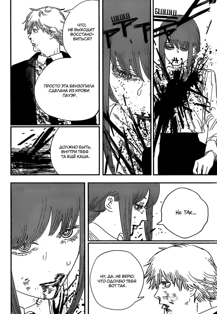 @kkh4r, новичок? уже 2 полноценные манги так то. 19 томов в сумме. всем известные гении могли сразу или практически сразу@Nierve, Могу попытаться объяснить некоторые моменты, которые я понял.2. Насчет тела Дендзи не уверен, но наверно это способности Почитты, т.к. он же заменил сердце Дендзи, поэтому они связаны были. Плюс-минус контракт между этими двумя никуда не делся. Дендзи оказался в мусорном баке потому что тело Человека-Бензопилы-Дендзи притащила туда Пауэр, чтоб спрятаться от Макимы.