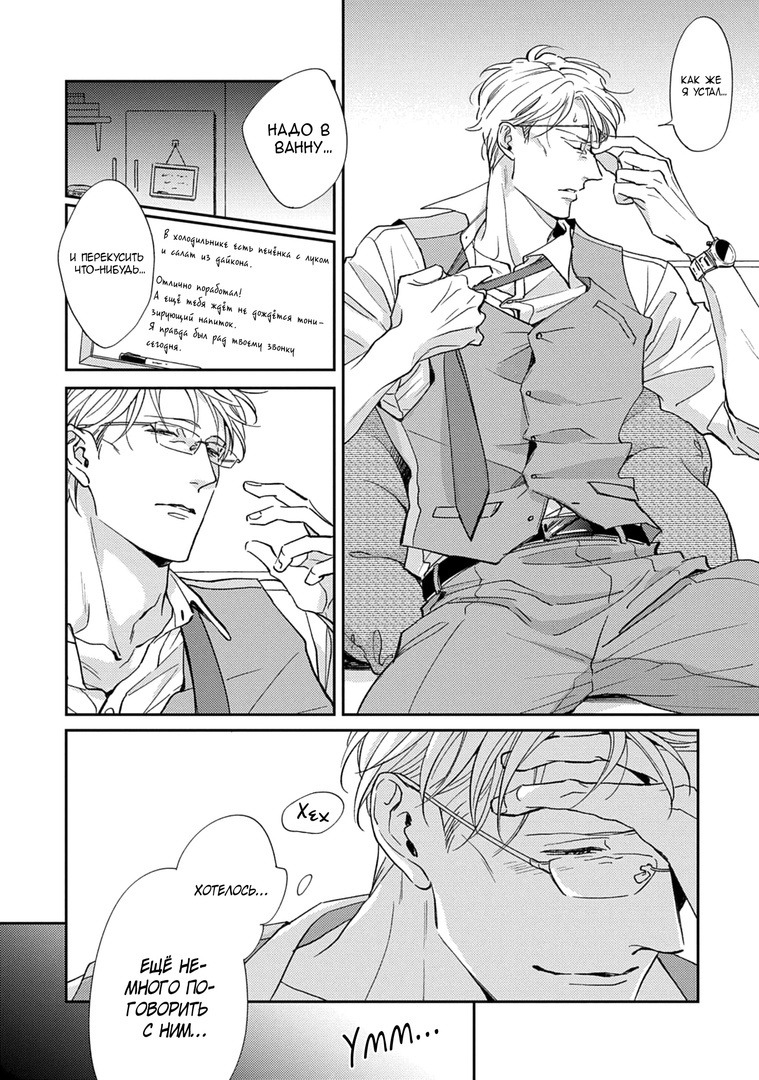 Сюжет довольно клишированный, но даже его можно хорошо преподнести, как и делает это автор, добавляя проблему в отношения из реального мира, а именно несовместимость рабочих графиков, невозможность провести достаточно времени с любимым из-за усталости. Если не построить адекватную коммуникацию, то эти дни копятся, как и недовольства друг к другу. Но герои постепенно выходят на диалог и недопонимание заглаживается, потому что это манга про взрослых людей. А после они идут дальше поддерживать, радовать друг друга каждый день.