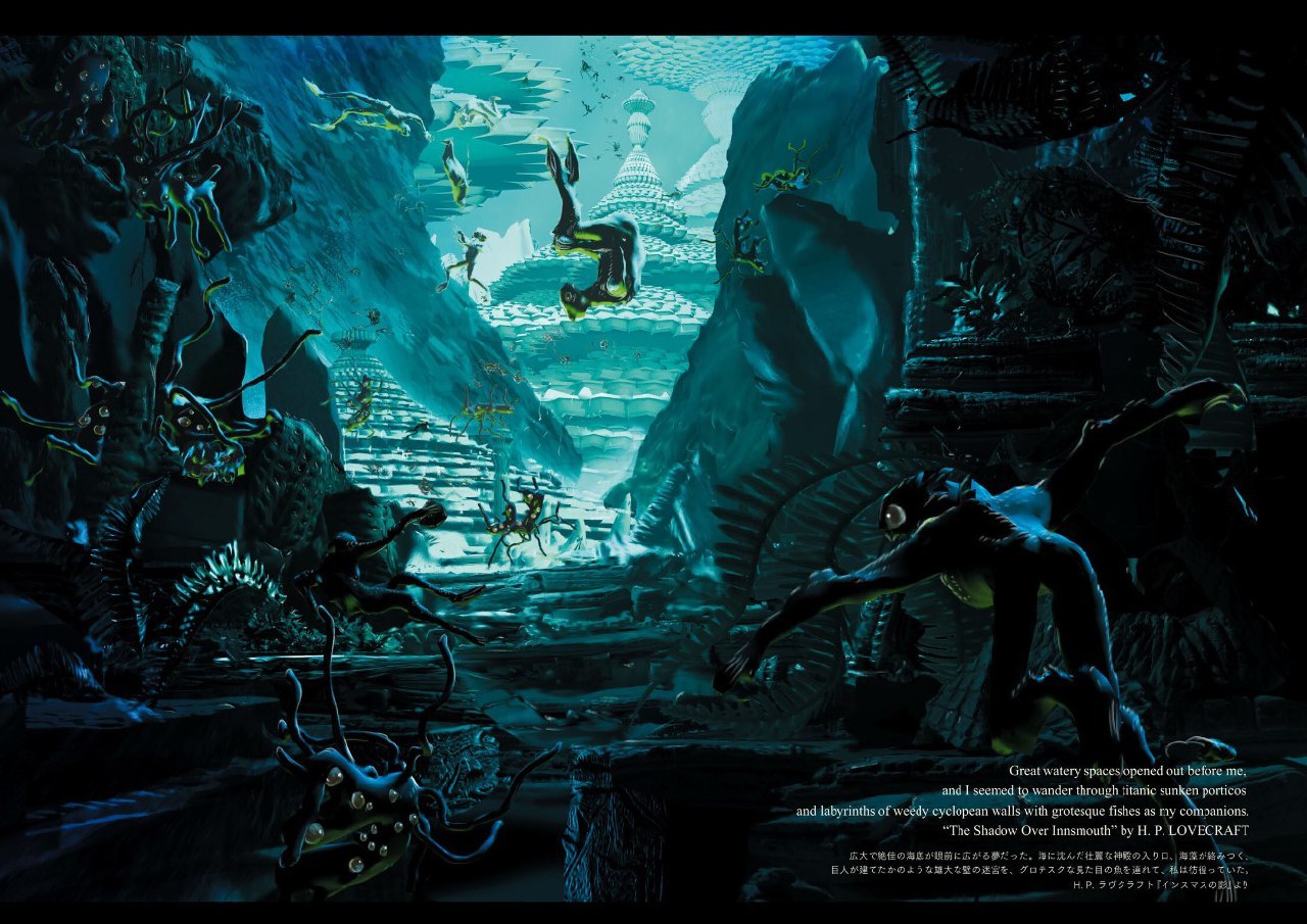 Цветная иллюстрация «Innsmouth no Kage» из январского номера Monthly Comic Beam