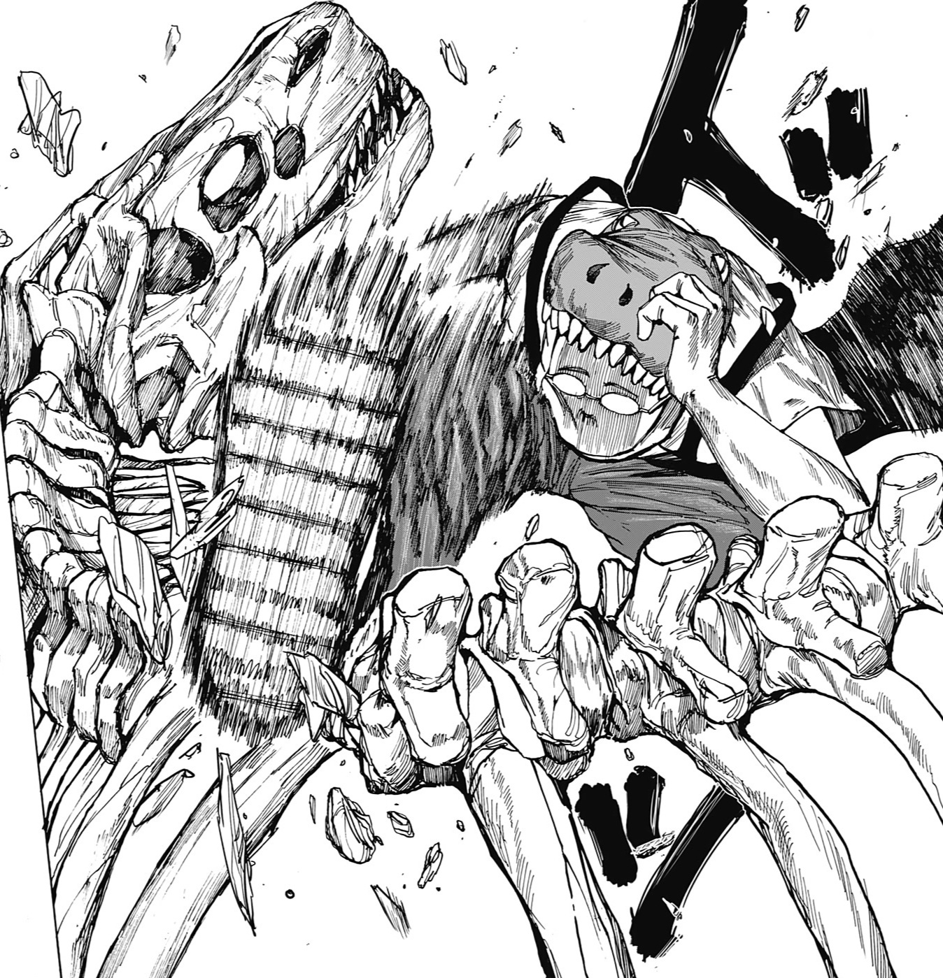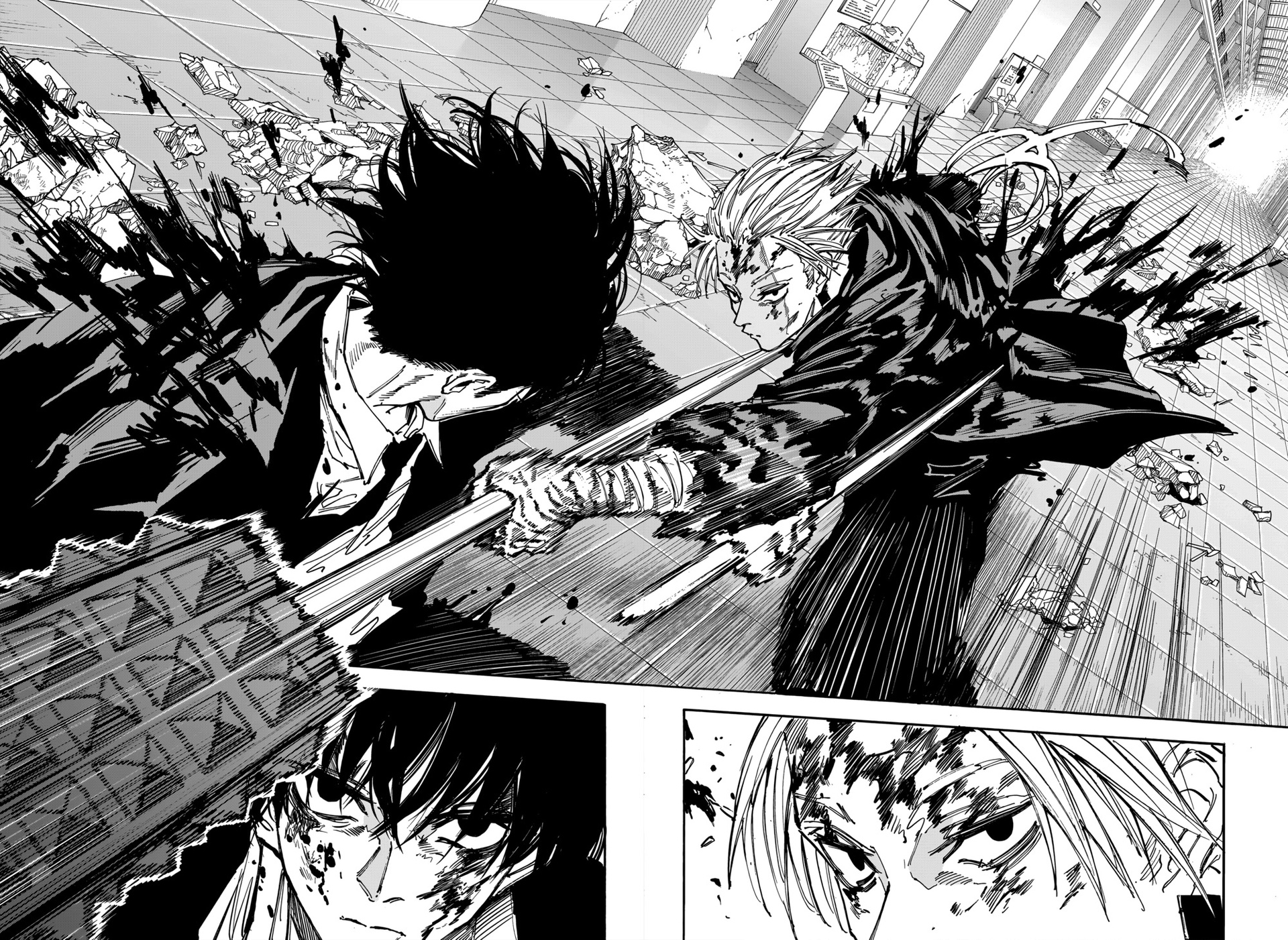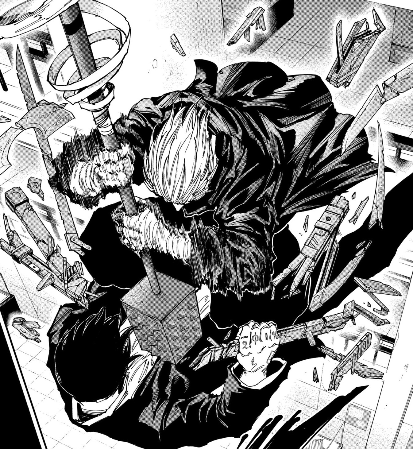 Помимо прикольных мелких арок, где просто глава-ситуация, есть тут ещё глобальный сюжет. Про него в принципе многого говорить не хочется. «Дни Сакамото» — это классический сёнэн, но не в плохом его смысле. Здесь, хоть и нету чего-то нового, однако сделан он хорошо, прямо по базе, так что даже бывалые сёнэн читатели не будут сильно скучать. По крайней мере визуал данной манги не позволит) Другими словами сюжет неплохой, но и не выдающийся. Однако знаете есть такие произведения которые сделаны чисто под молодую подростковую аудиторию. Например я недавно смотрел фильм «Годзилла и Конг: Новая империя» и вот смотря на такой кадр: