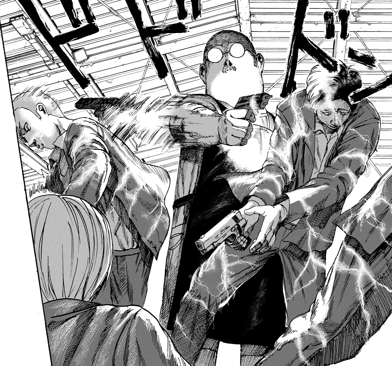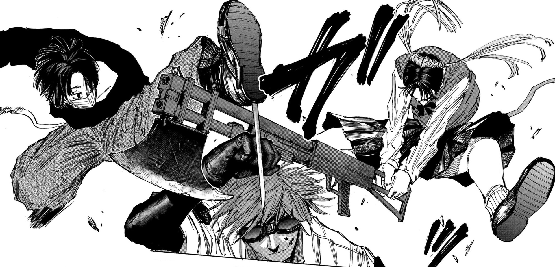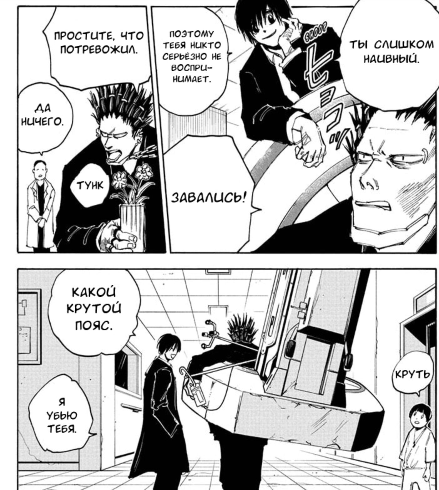 Кстати я там в заголовке написал, что гг это японская версия Джона Уика и тут по-мимо того, что гг также мочит (ну в контексте манги вырубает, а не убивает) всех карандашом, он может это делать и ручкой: