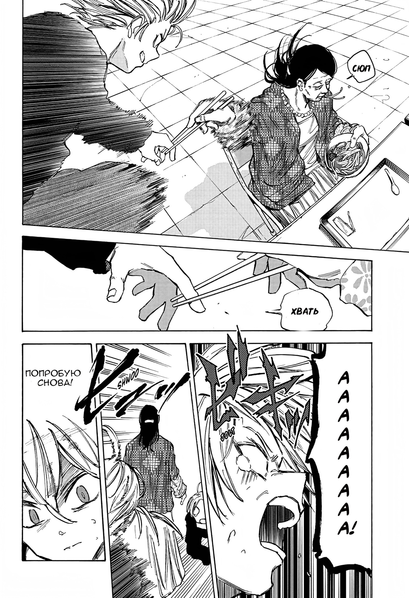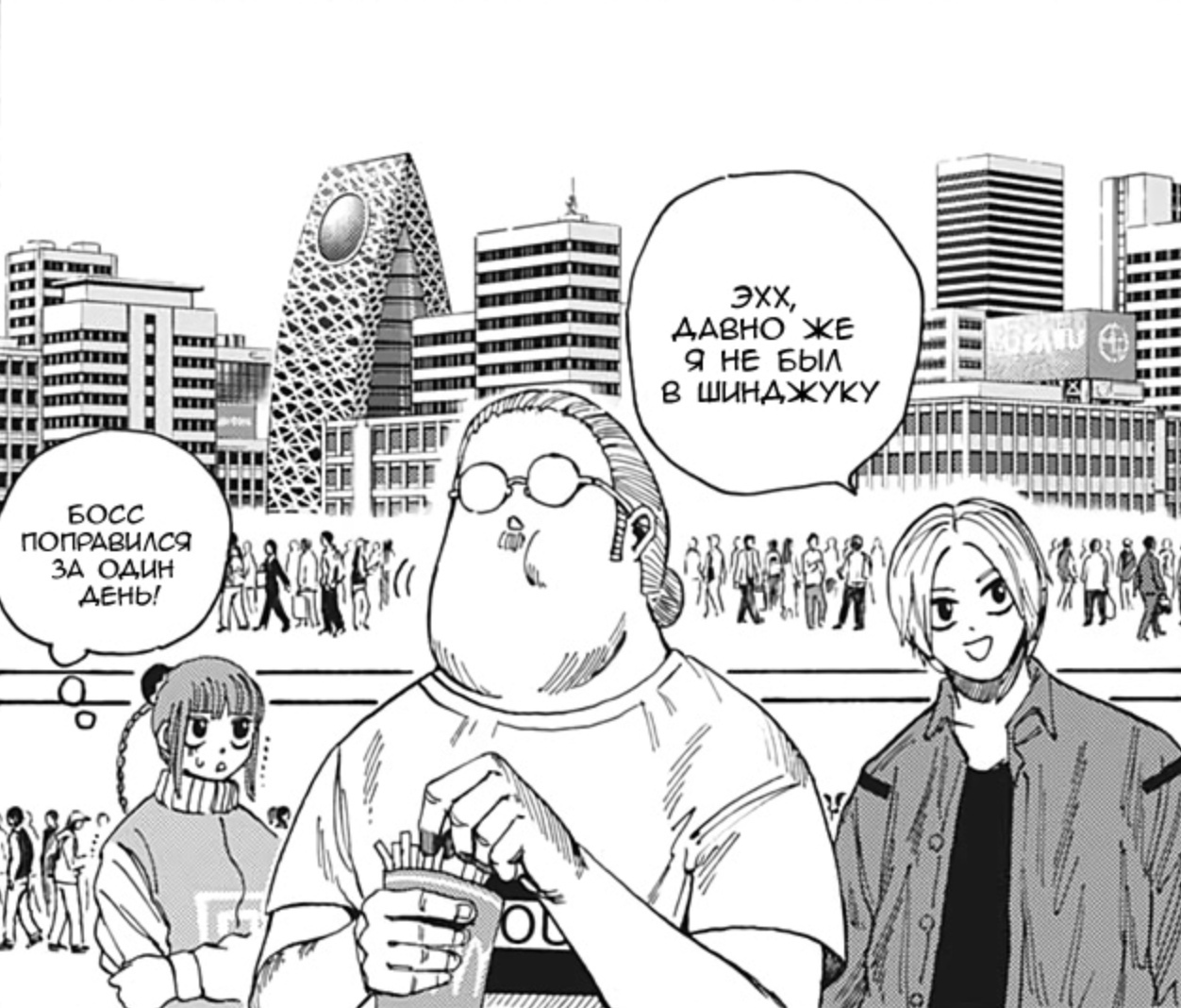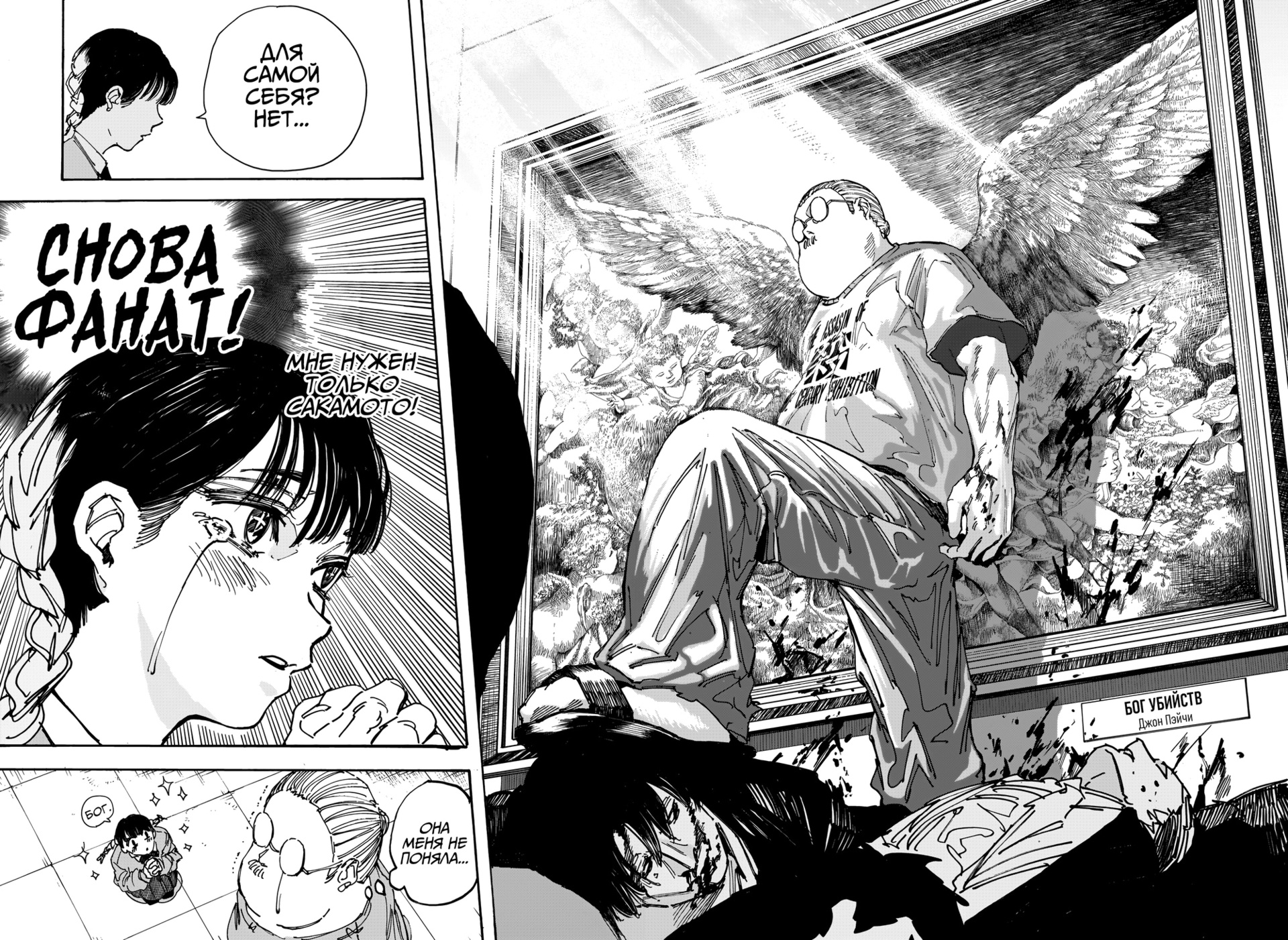 Я понимал, что будь мне 13, то я ссался бы кипятком. Но мне не 13 (20+), поэтому я смотрел как-то с пофигизмом, а есть вот такие произведения, которые будят в тебе твоего внутреннего ребенка, и независимо сколько тебе лет ты начинаешь радоваться как ребенок от происходящего. И вот «Дни Сакамото» благодаря арке в музее, смог это сделать. Эту арку я читал с огромным удовольствием. Последний раз я так радовался в именно сёнэнах в «Магической битве», когда была дуэль Годжо и Сукуны, а до этого тоже в «Магической битве» в арке Сибуя и в «Ван писе» в арке Вано.