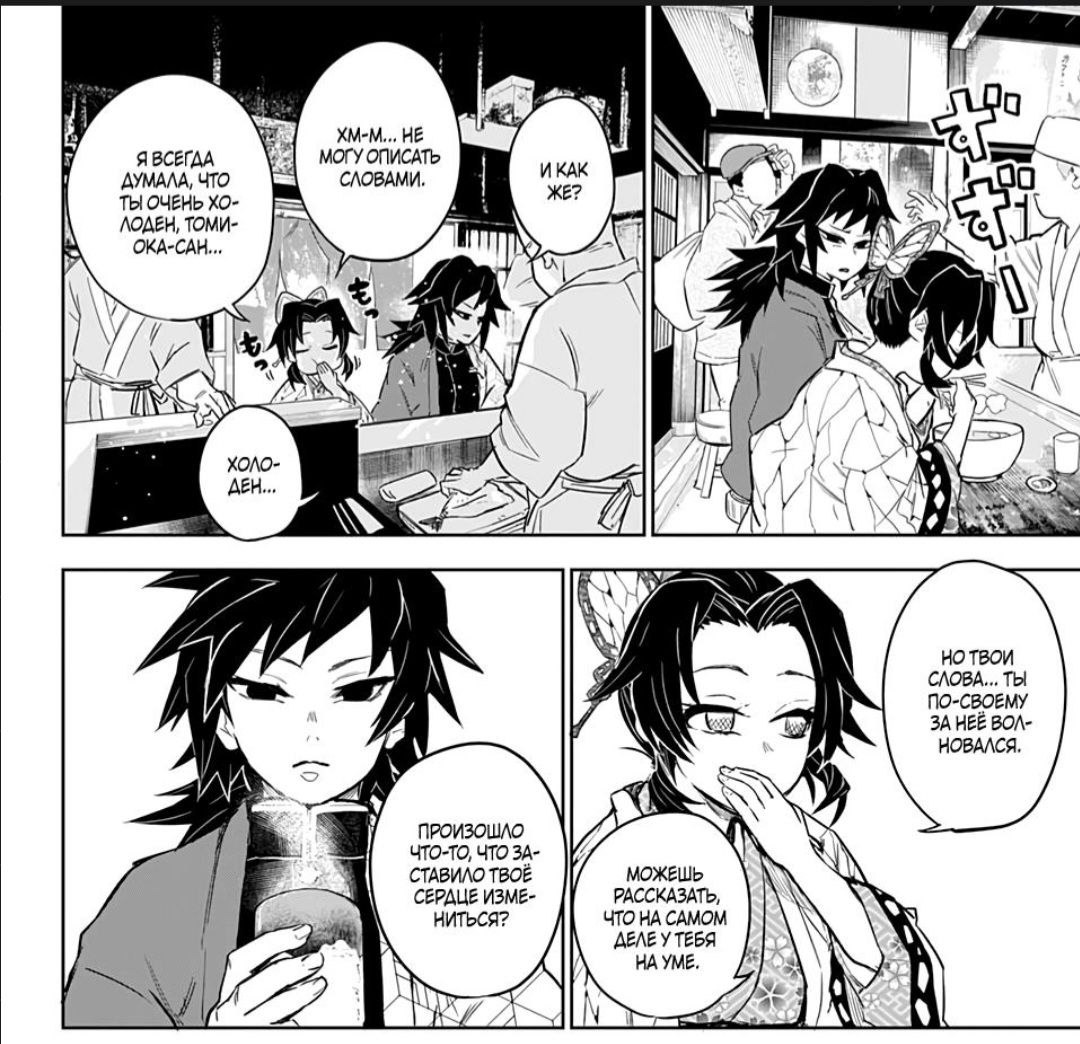 Если про Ренгоку нам рассказывали его историю до того как он стал столбом, то история Гию и Шинобу это альтернативная вселенная, как я поняла или что было бы если Гию все же убил Танжиро.