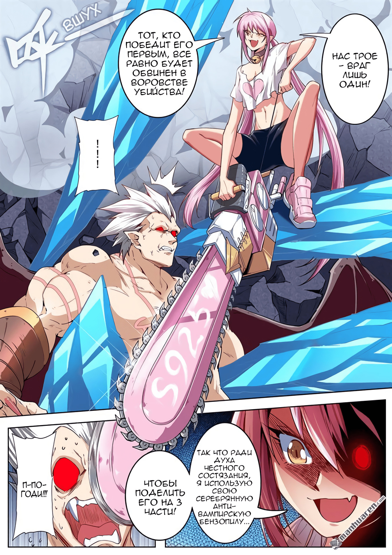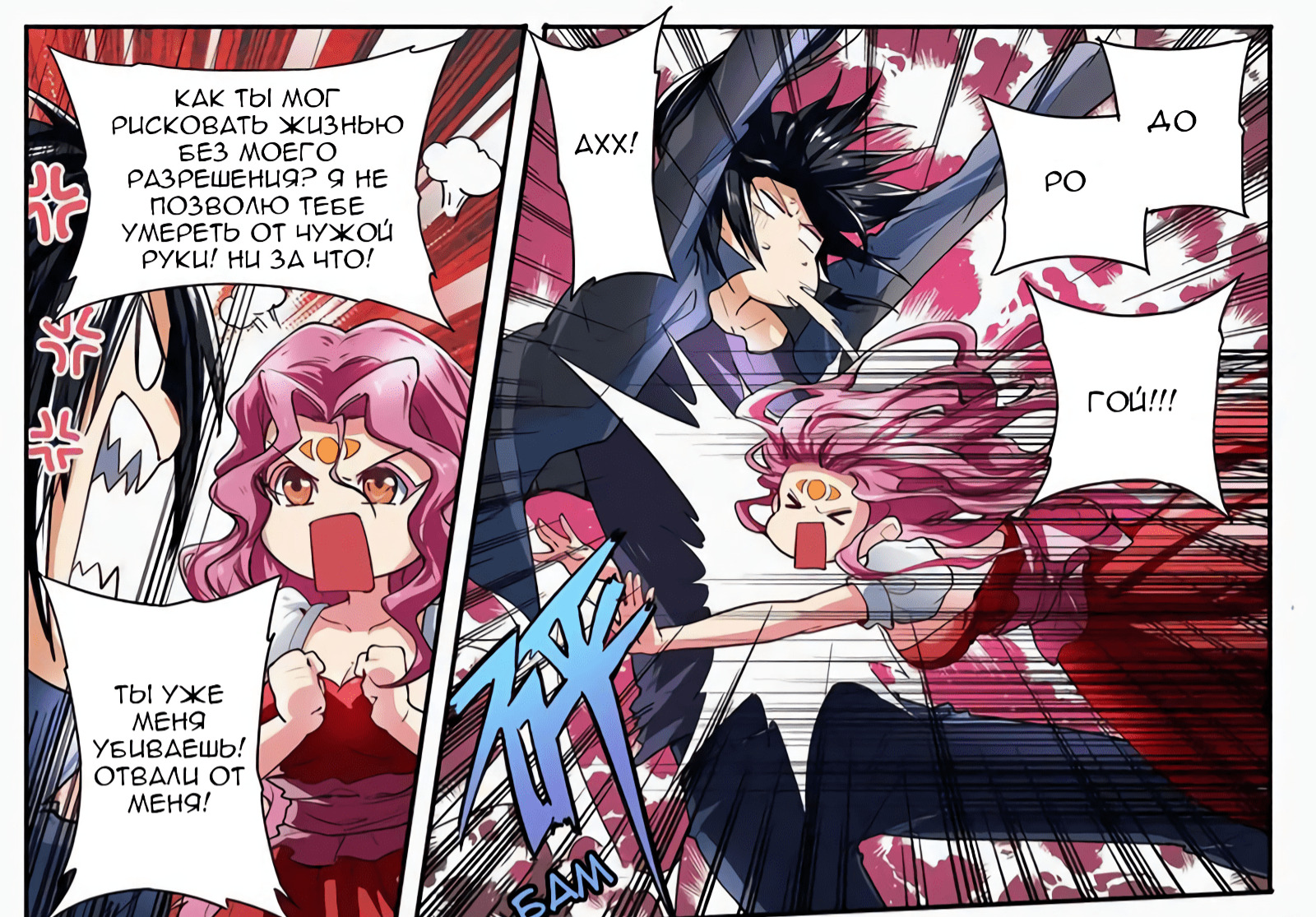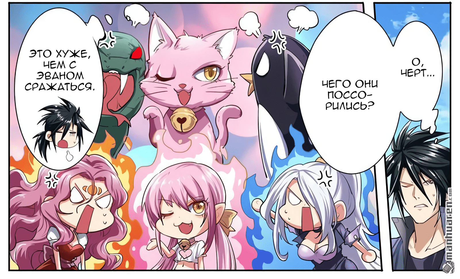 Боёв, антагонистов становится и больше, и меньше, манипуляторов основных на шахматной доске сами разузнаете. Периодически кажется, что банальщина, но почему-то продолжаешь читать.. есть что-то такое, интересное, да и автор сумел нагнать интрижки. Качество графики тоже со временем выросло на голову, радует. Шуточки бывают отменные, бывает просто улыбнёт, кому как.