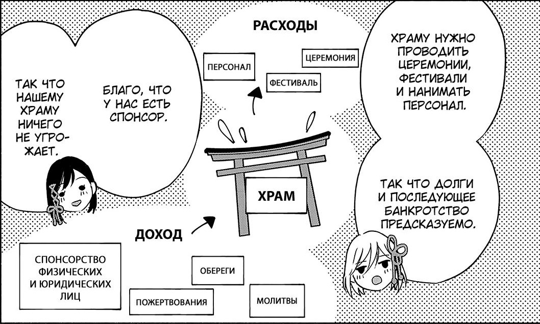 Как манга, связанная с религией синто, она может позволить себе отразить присутствие Ками. Таким духом является блуждающая по храму Амагами