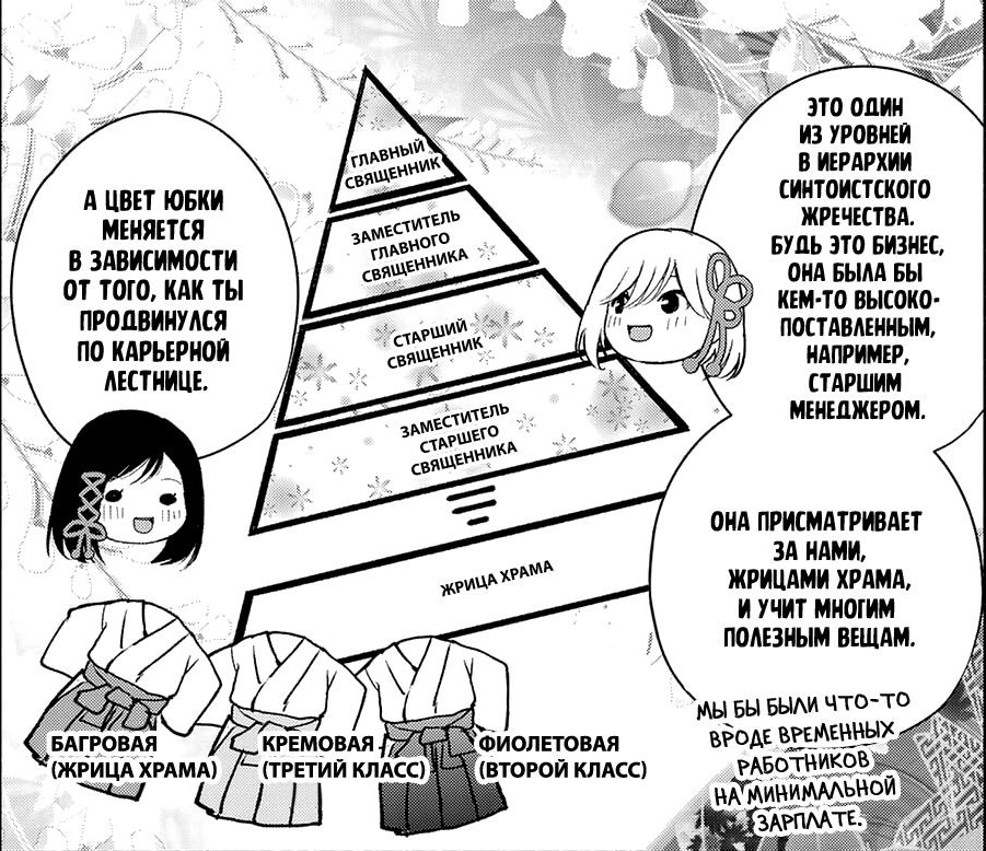 Сюжет начинается с переезда Урю в новый дом – храм Амагами. Храм выступает главным местом действия. Синто не раскрывается как религиозное учение. Вместо этого упор делается на жизни жриц. Подобно Dagashi Kashi демонстрируются некоторые интересные факты о деятельности храма.