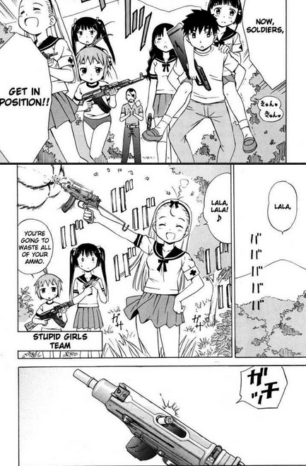 Э-э, эччи с изгоняющим духов ОЯШ-ем через писующих девочек ему на лицо? А-а, оно вообще на все жанры пародия, даже на Gunslinger GirlШкола убийц. Люди ещё на Tenshi no DropАнгельская капля бугуртят чего-то... М-м, один автор оригинала.