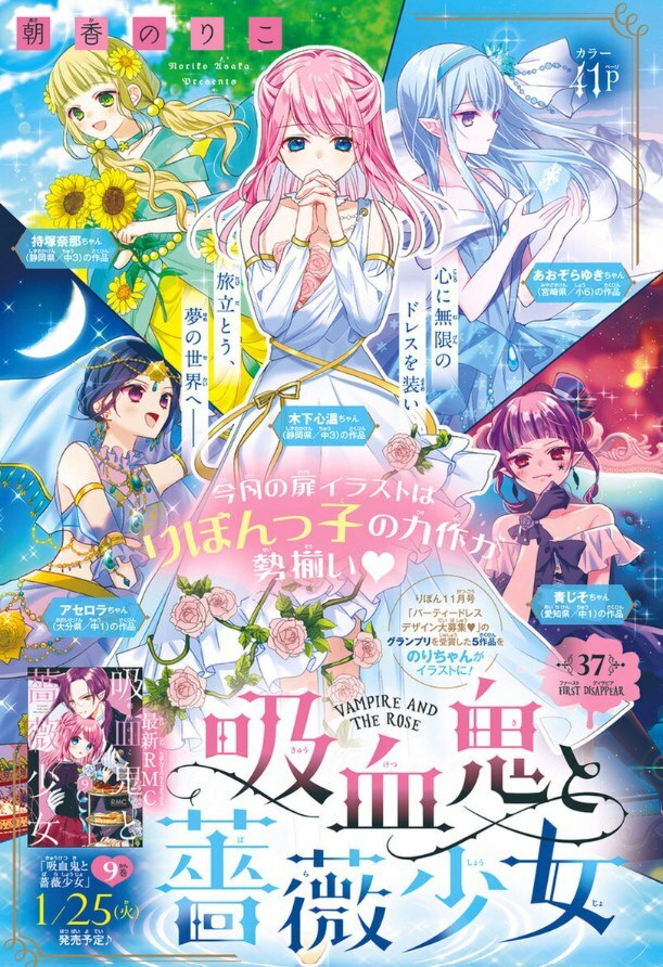 Цветная иллюстрация «Kyuuketsuki to Bara Shoujo» из февральского номера Ribon
