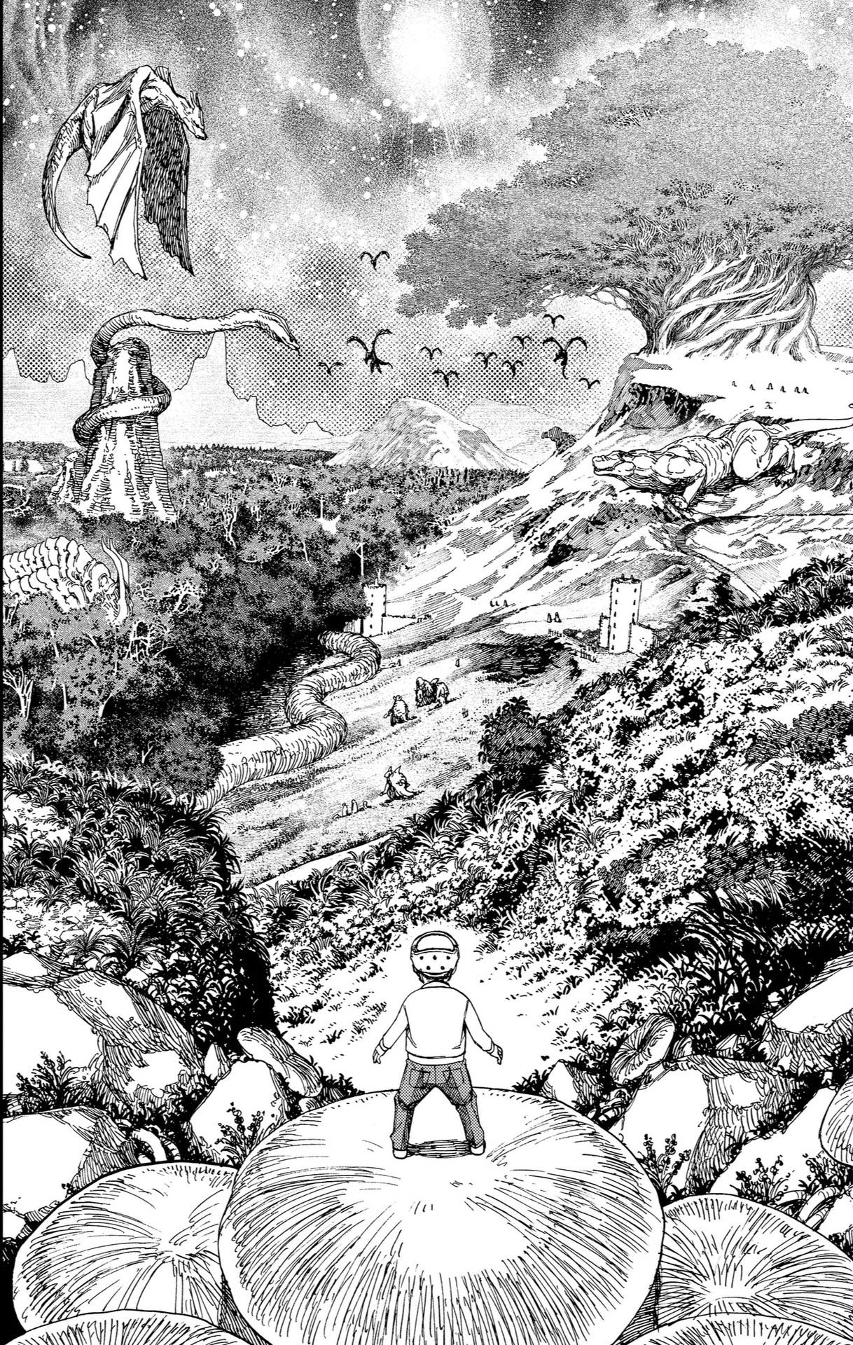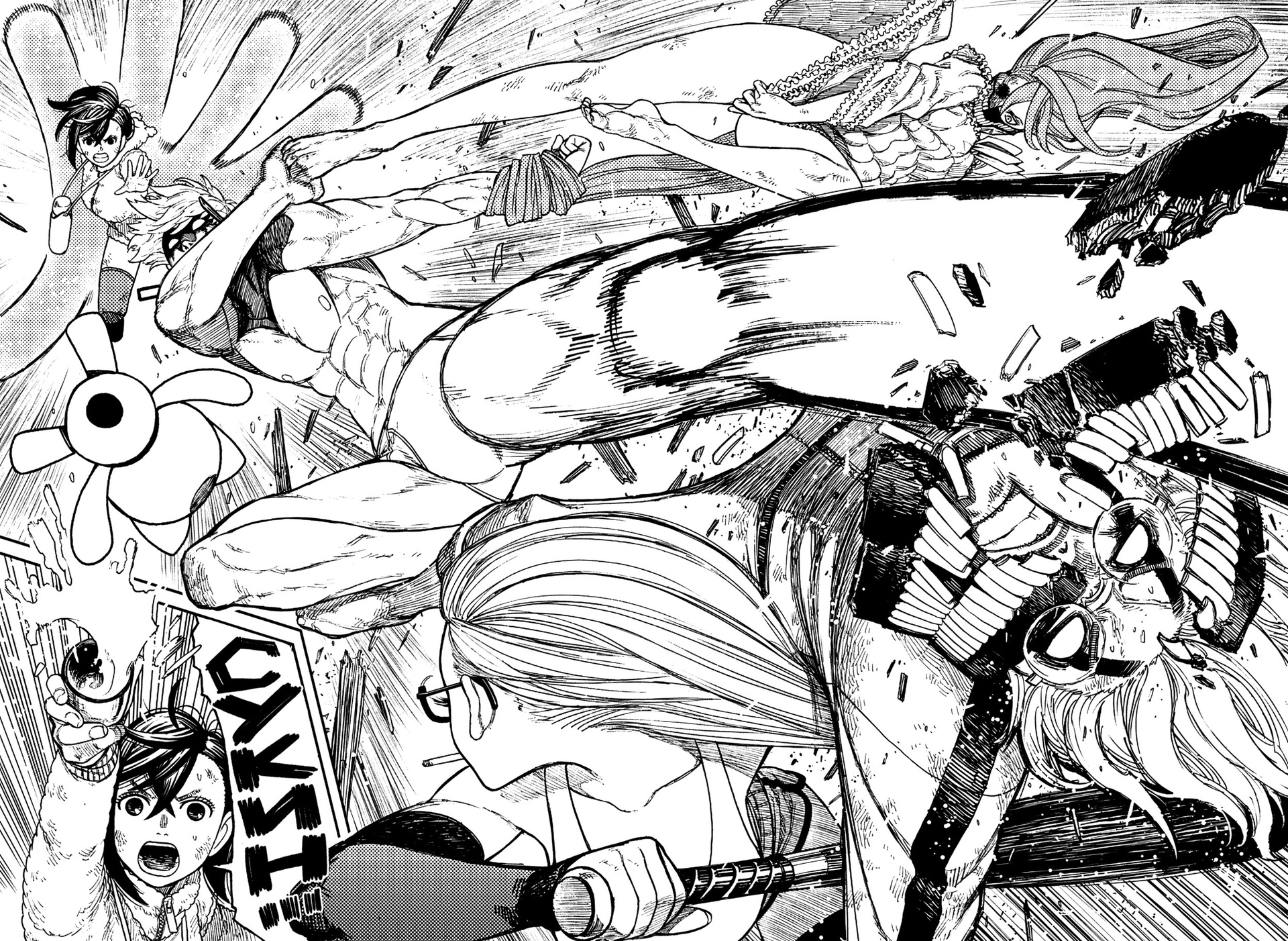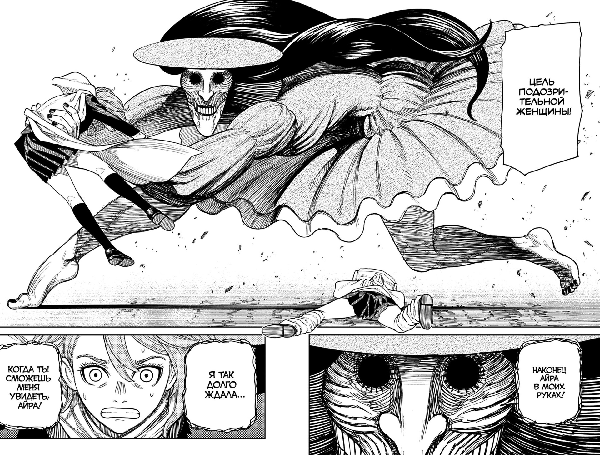 Но может хотя бы эти самые "битвы с боссом" представляют собой что-то крутое и креативное? В конце концов, я недавно читала ещё одну мангу с похожей структурой - "Подземелье вкусностей" - и там сражения с различными монстрами были реально классными, непохожими друг на друга и позволяющими взглянуть на привычных ДНДшных ебак с новой стороны, чем манга и цепляла. Увы, в "Дандадан" битвы абсолютно безыдейные. Я допускаю, что в аниме они выглядят зрелищно - постоянно что то двигается, взрывается, увеличивается в размерах, меняется окружение, превращаясь во что-то наркоманское а-ля картины Дали и Пикассо. Но все же простой махич сам по себе - это не самое интересное, самое интересное это то, как именно герои справятся с ебаками. Может, за счёт смекалочки, подобно Джозефу Джостару из "Жожи"? Может, за счёт грамотного использования своего четко обозначенного арсенала скиллов и знаний, как в "Стальном алхимике" и том же "Подземелье вкусностей"? Может, за счёт изнурительных тренировок и прокачки своих навыков, как в "Кеншине" или раннем "Наруто"? Не, все мимо! Тут внезапные скиллы будут открываться сами собой прям в ходе сражений без каких-либо предпосылок и подводок. Просто в ключе "о, вау, оказывается я и так могу!", либо появляются рояли из кустов вроде бабки, которой не было в приключении с героями, но которая подобно Гэндальфу на орлах, успела как раз вовремя. Надо ли говорить о том, что такие вот рояльные скиллы и появления помощников - становятся скучными и неинтересными уже после первого применения такого сюжетного хода?