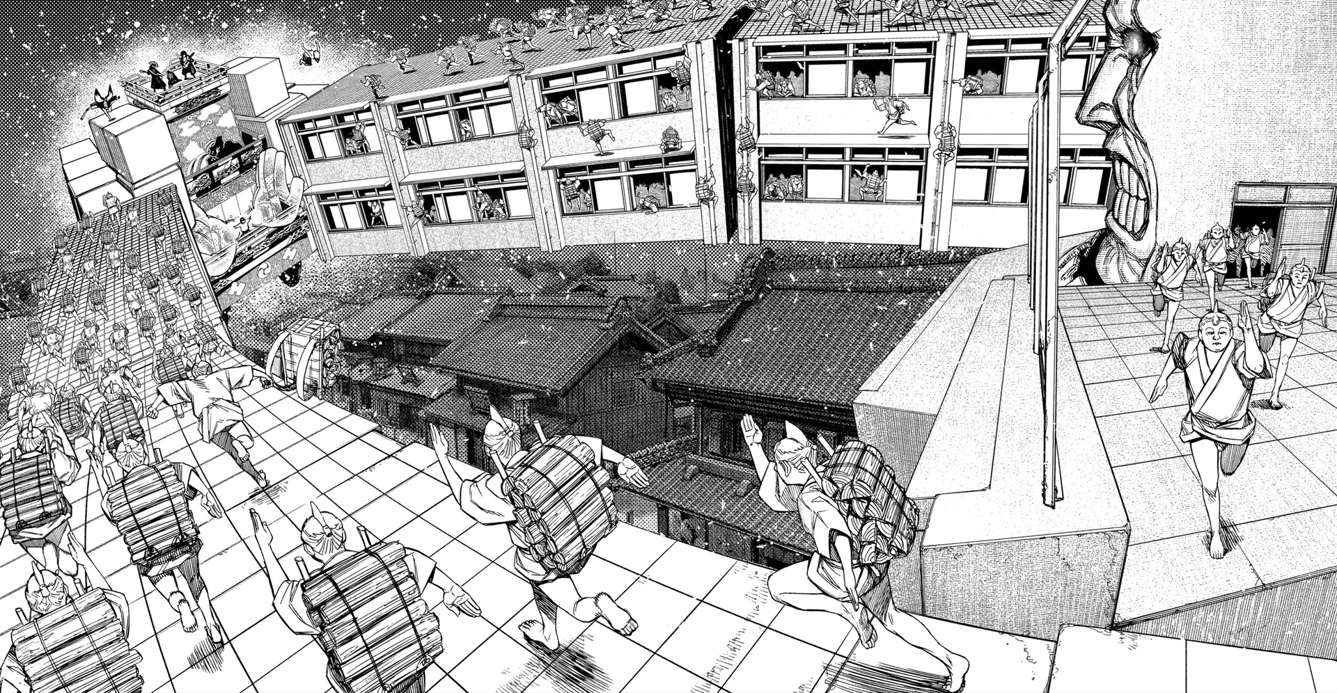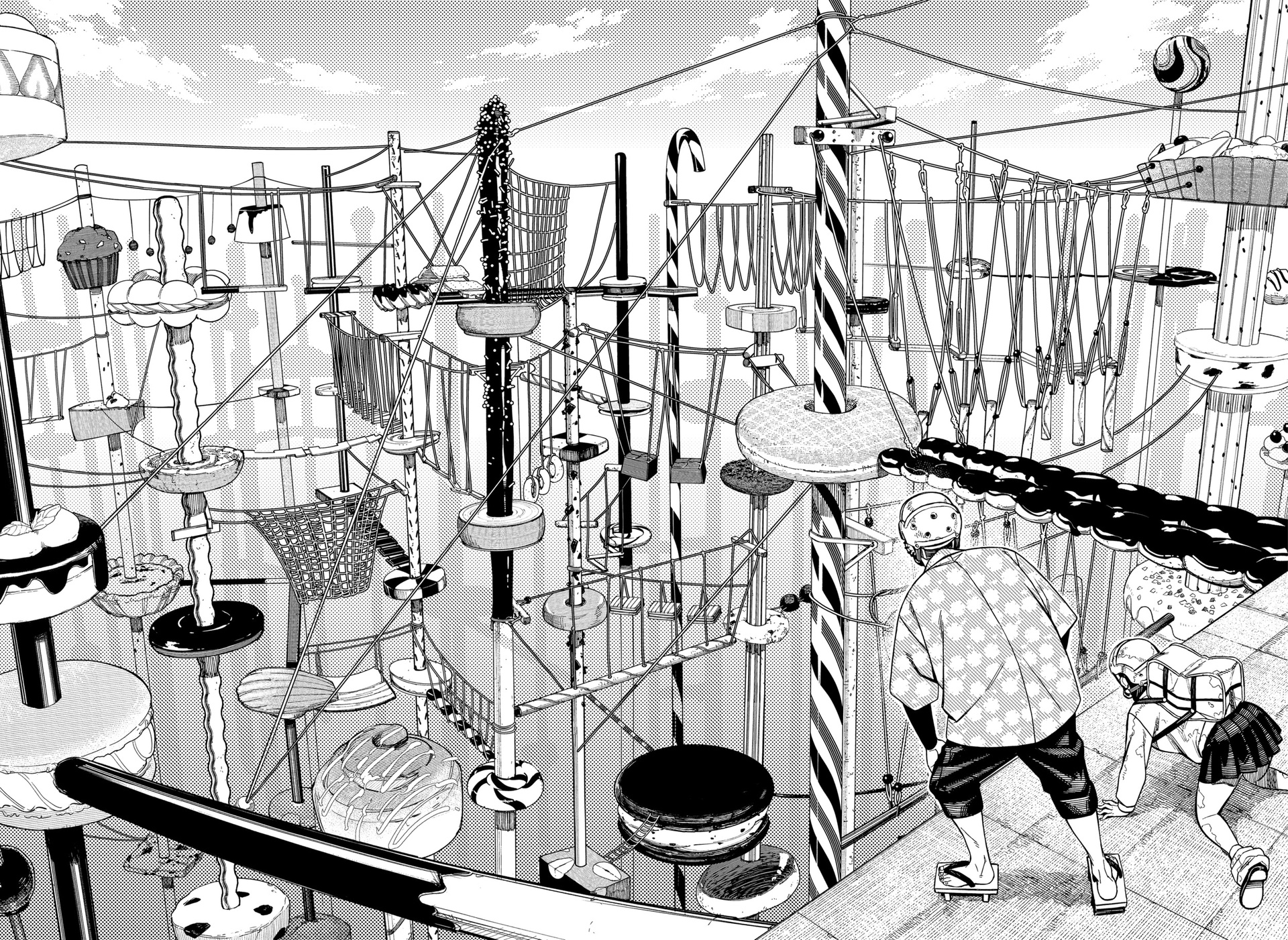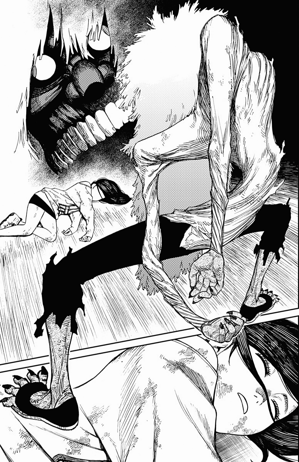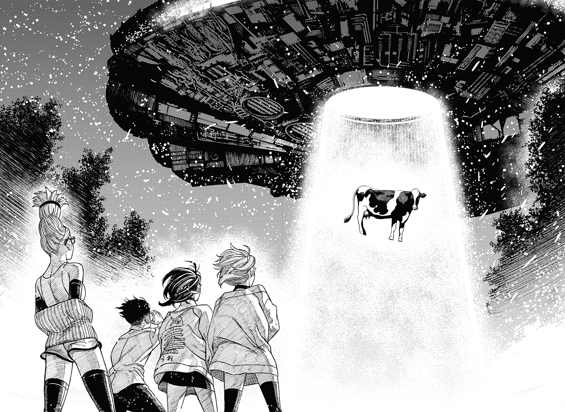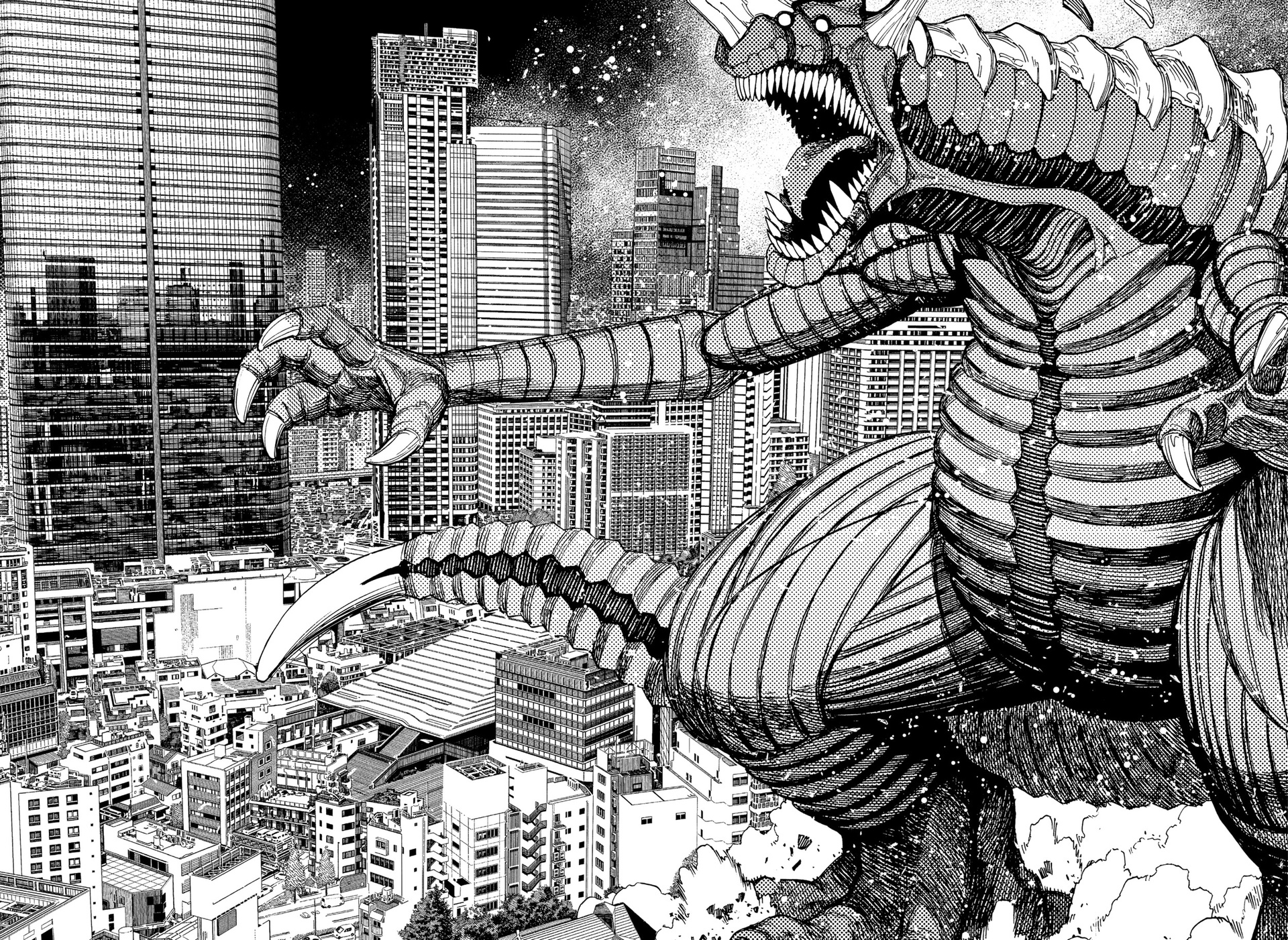 Быть может, в "Дандадан" уникальная проработанная вселенная с нетипичным лором? Не, это городское фентези о подростках с суперспособностями в современной Японии, которые сражаются с демонами. "Синий экзорцист", "Бездомный бог", "За гранью", да даже, будь она неладна, "Бензопила". Список, где у нас было то же самое, кажется, можно продолжать бесконечно. Но может "Дандадан" предлагает какую-то уникальную концепцию этих всех демонюг, продуманную мифологию данной вселенной? Не, даже близко нет ничего подобного. У нас тут и екаи - без какой-либо системы и иерархии, и Лох-несское чудовище, и кайдзю, и окололавкрафтовщина. Смешались в кучу кони, люди, и этот коктейль из разных мифов и легенд даже никак интересно не обыгрывается и не деконструируется. Может, разнообразия привнесет существование во вселенной инопланетян? Ну...они просто есть и нужны ради шюток про похищение гениталий. Опять же, никаким продуманным лором там и не пахнет. Один раз вкидывается мысль о том, что екаи защищают землю от инопланетян, но развития эта мысль на момент 50-й главы не получает, и вообще это всего лишь теория одного из гг.