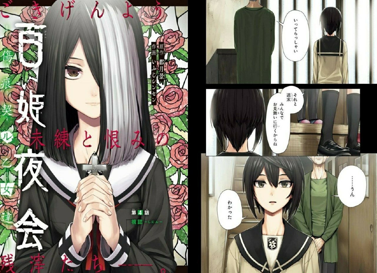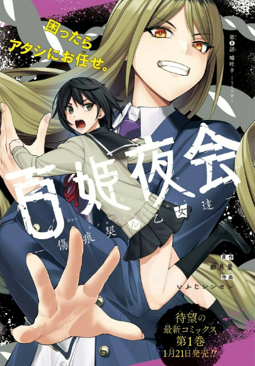 Цветная иллюстрация «Hyakkiyakai: Kizuato Chigiru Otome-tachi» из февральского номера Monthly Gangan Joker