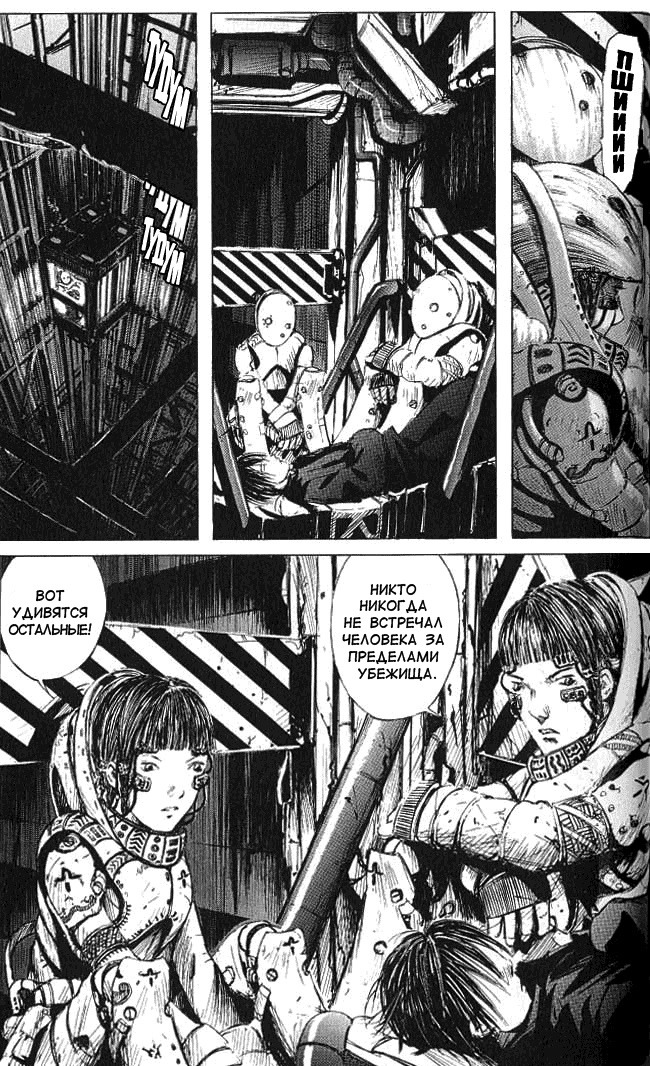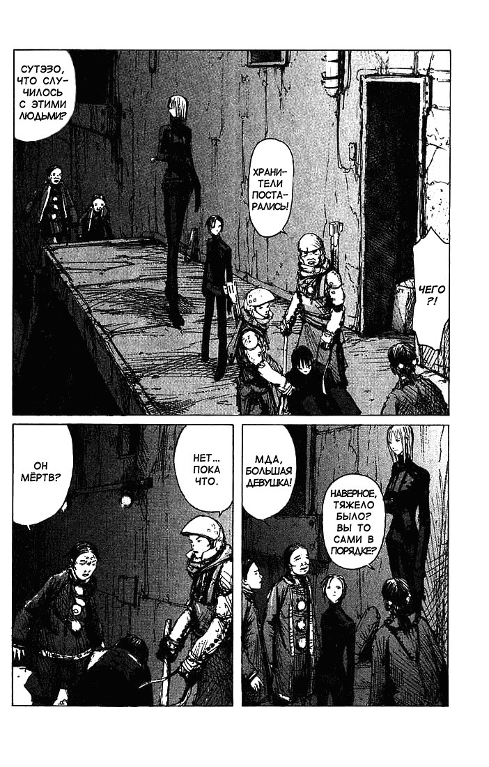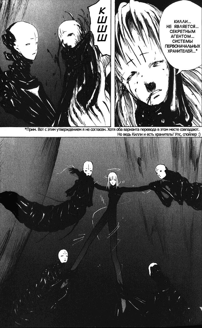 Про Нихея я узнал еще в школе в начале нулевых - Блейм, Биомега, Нойз и только начавший выходить тогда Абара. Ни на что не похожий уникальный стиль и мрачность происходящего тогда сильно выделялись на фоне почти всего, что попадалось мне из аниме и манги. А после была еще и Сидония... Спустя годы и прочитанные работы ловишь себя на мысли, что у Нихея вся манга про мегаструктуры, вирусы, сейфгард и т.п. Минимум текста, и происходящее надо додумывать, а повествование скачет. А иногда автор вовсе забывает, о чем писал на предыдущей странице. Каждая работа - будто калька с предыдущей, если честно, но это если сильно придираться. А если брать мангу в отрыве от всего, то, пожалуй, Блейм - одна из лучших работ мангаки, если не самая лучшая. Довольно адекватный сюжет, достаточный объем, захватывающая атмосфера и сеттинг, а также интересный рисунок - достаточная аргументация, чтобы хотя бы попробовать почитать. Очевидно, что манга придется по вкусу далеко не всем, но для общего развития и расширения кругозора, как мне кажется, почитать ее стоит. Вещь довольно самобытная.