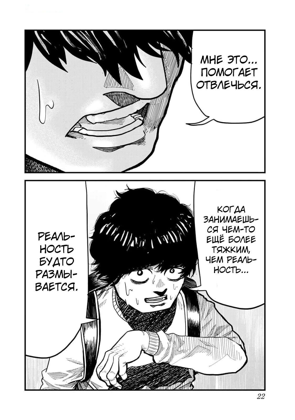 — Мне это помогает отвлечься. Когда занимаешься чем-то более тяжким, чем реальность… Реальность будто размывается.