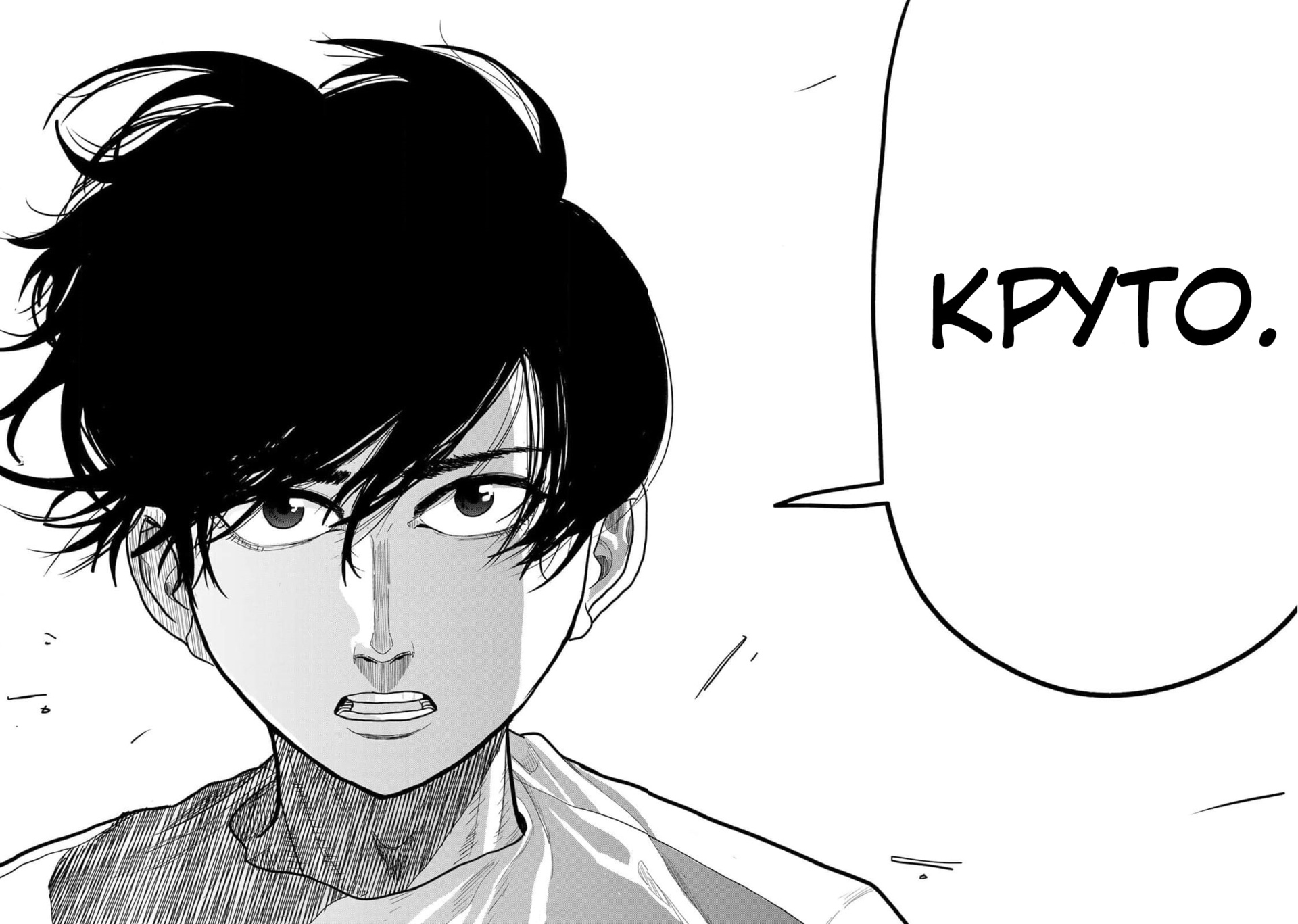 Знаете, есть момент, после которого ты осознаешь, что наткнулся на очередной шедевр и для меня этим моментом стал этот диалог! Думаю многие читали или смотрели спортивные тайтлы и все они про то как главный герой, скромный новичок, влюбляется в какой-то определенный спорт и с помощью тяжёлых и упорных тренировок шаг за шагом идёт к чемпионству. Но что если перевернуть этот сценарий?