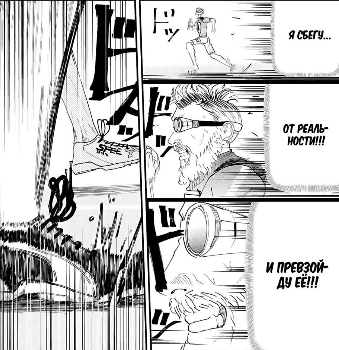 А переживать за персонажей мы тут будем очень даже сильно. Тут много и все на разный вкус! Многогранный главный герой, который будет переживать и взлёты, и падения, очерствевший от жестокости и предательств и одержимый победами Комия, с железной и непоколебимой волей хрупкая девушка Аой, сломленный под давлением ожиданий и ответственности Нигами и много кто ещё. Чего стоит только дед (по критериям профессиональных легкоатлетов) Кайдо, который всегда занимал вторые места из-за непобедимого чемпиона Дзаицу. Его цитата просто покорила меня: