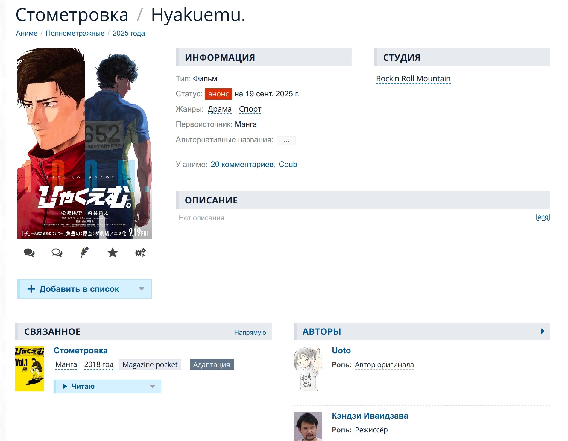Если вы ищете историю, которая заставит задуматься, переживать и, возможно, по-новому взглянуть на собственные цели — «Стометровка» определённо стоит вашего времени. Там всего 40 глав завершенного произведения! А теперь, если позволите, мне нужно перевести дух — после такого эмоционального забега это необходимо.