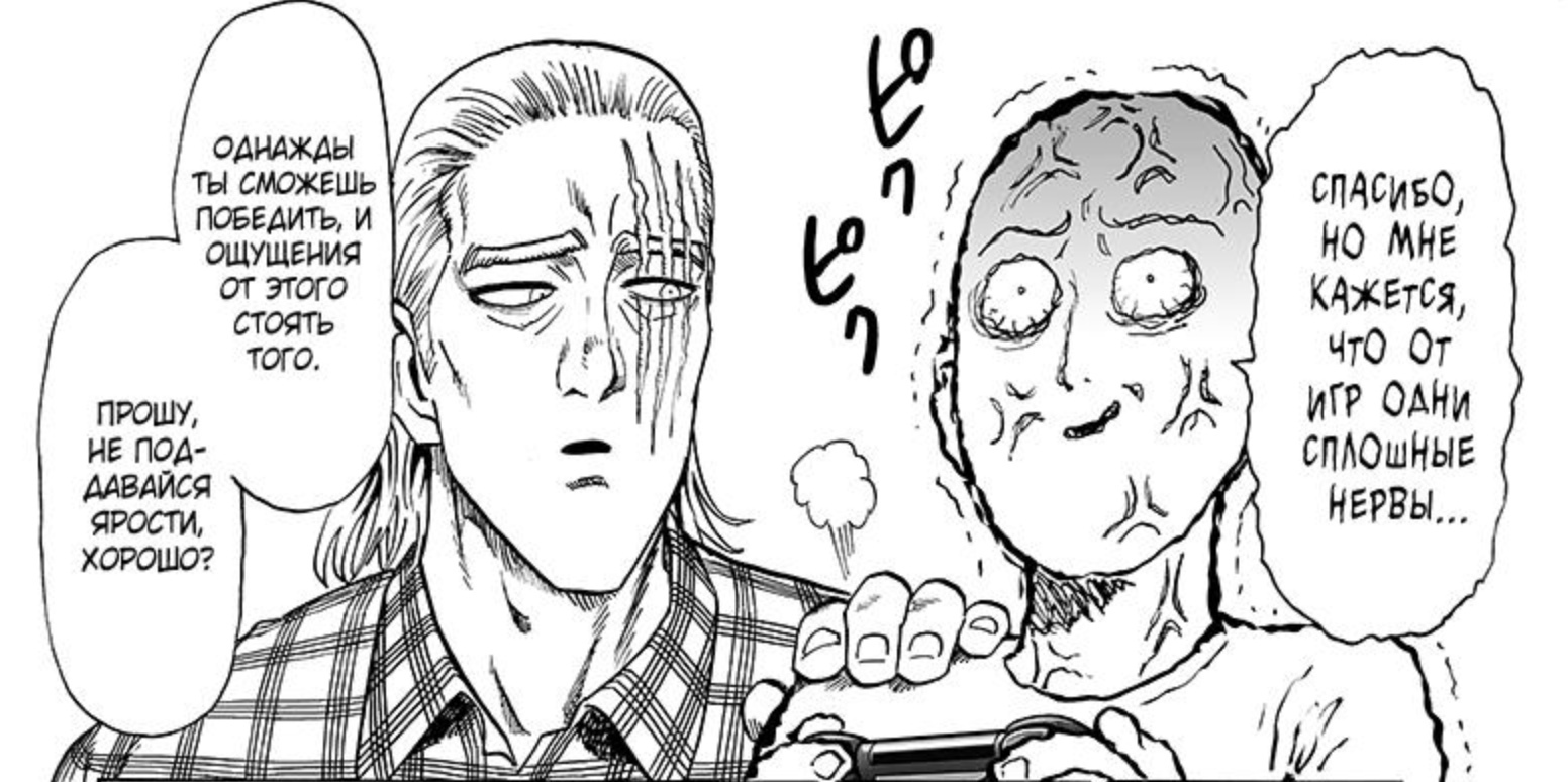Тут ещё и гг как и Сайтама бомбит с игр)