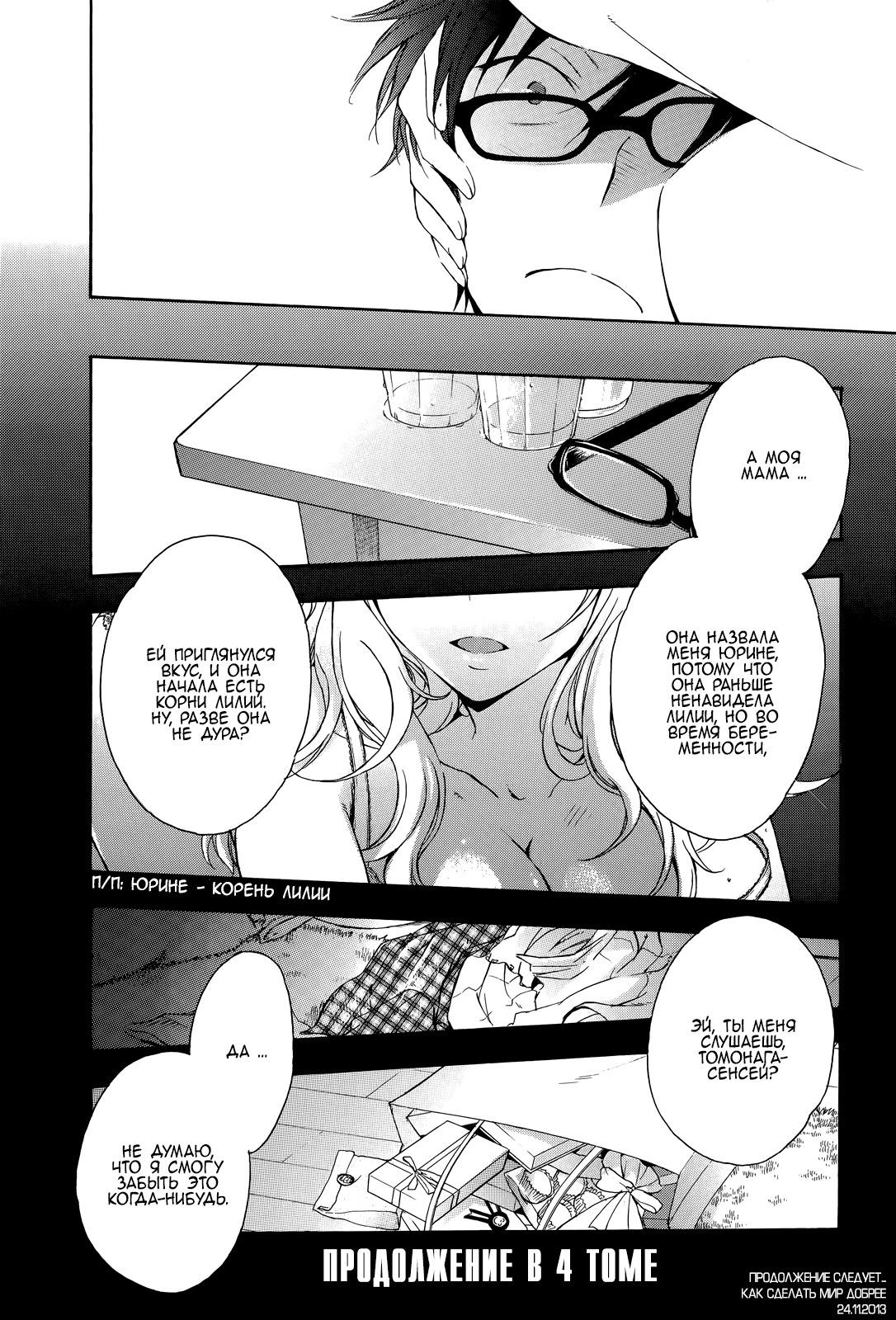 Бывает такое, что даже с натянутым, душным и непонятным сюжетом все в конце приводит к какой-то понятной, хорошей, крепкой концовке в финале, но и тут не повезло. Ушел из школы, оставив 2 учениц в подвешенном состоянии, потом таймскип на непонятно сколько времени - уже преподаватель, важный курица, на каждую из тех самых двух учениц выделено по несколько страниц, которые снова ничего не объясняют.