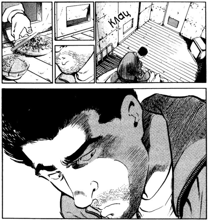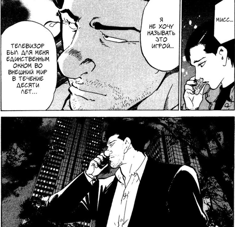 Здесь нет экстремального насилия, просто потому, что желание героя отомстить не лежит в основе манги. Гото просто пытается понять мотивы человека, который его запер. Если фильм - это почти античная трагедия с ее буйством страстей, убийствами и театральными переворотами, то манга гораздо мудрее. Сценарий быстро расходится и принимает форму относительно классического триллера. Гото ведет расследование, копается в своем прошлом, принимает помощь от одних персонажей, защищает других... и, наконец, встречает своего "врага". Игра в кошки-мышки продолжается, полная подсказок и открытий, пока истина наконец не выплывет наружу. И тут бац: концовка очень обманчива, возможно, более правдоподобна, чем концовка фильма (и все же), но совершенно нелепа по сравнению с наказанием, понесенным в ответ.