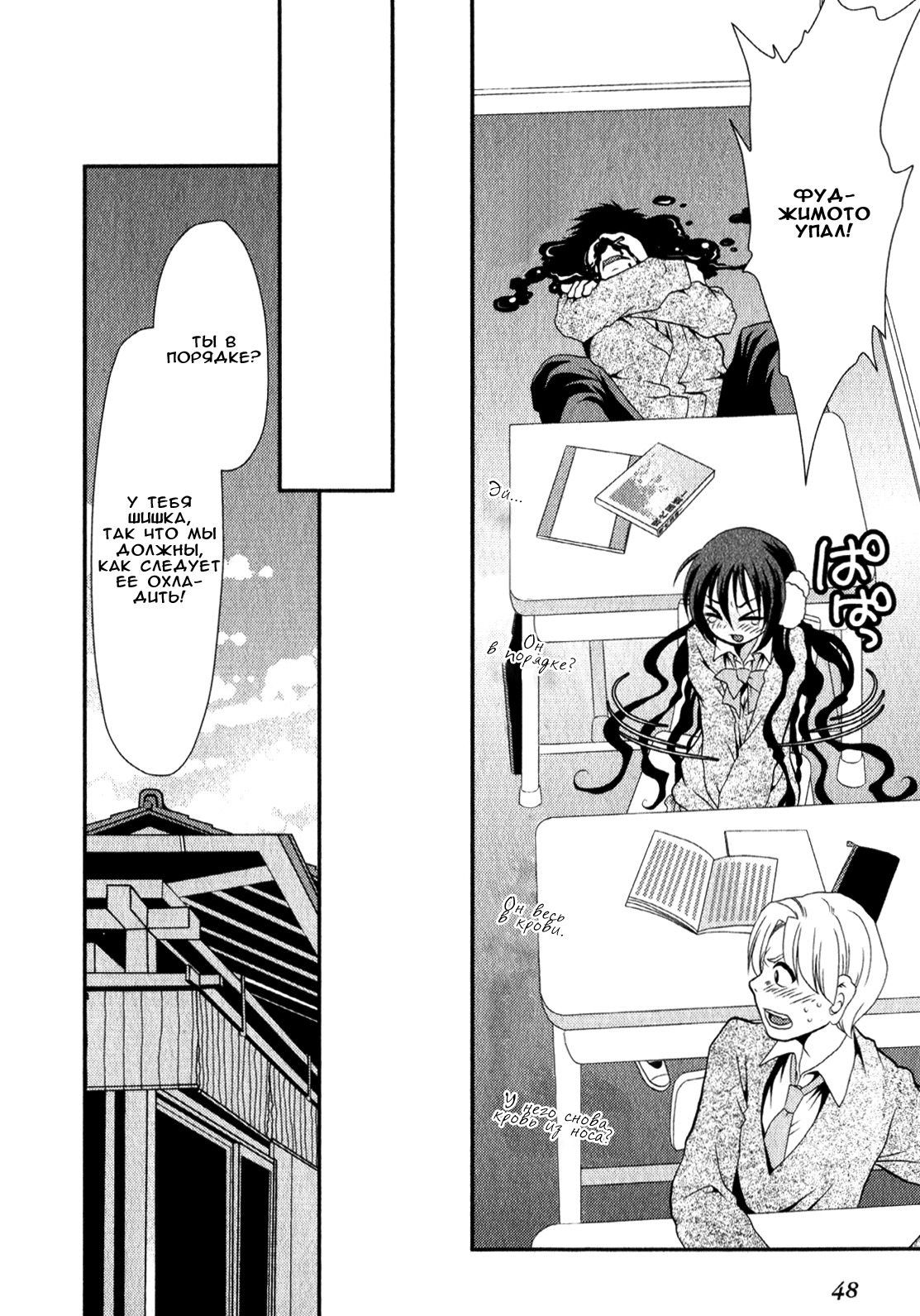 ✦Сюжет в целом,как и подобает романтическим комедиям,прост и легок.Однако начало в этой манге уж слишком сильно меня раздражало,что и сделало этот промежуток в истории очень душным.Благо хоть потом история раскачалась и показала что-то интересное. ✦Все персонажи милые и забавные,но не более.ГГ очень сильно раздражал в первую половину своим поведением,которое один в один повторяло предыдущие.Хорошо хоть автор вовремя одумался и показал что-то еще,помимо кровавого фонтана. ✦Рисовка обычная,однако постоянно скакала в качестве.Этти от подобного тоже не далеко ушло.Местами красиво,